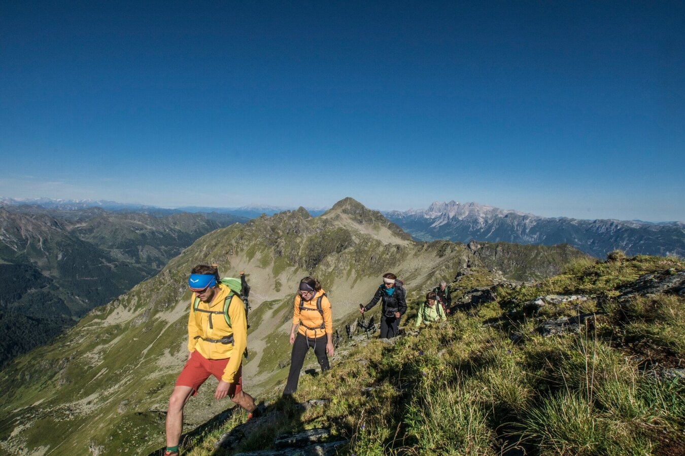 From Seeleiten car park in Untertal to Kerschbaumeralm the trail follows a forest road (alternatively you can ascend via the alpine trail through Höll gorge). From Kerschbaumeralm to Neualmscharte gap the route is a typical alpine hiking trail. From Neualmscharte gap (Northwest ridge) to Wildlochscharte gap (South ridge) the route is a high alpine trail with short climing sections. Pay attention to the section safety information. Along the route there are Almgasthaus Riesachfall inn, Gfölleralm chalet, Kaltenbachalm chalet, Preintalerhütte chalet & refuge, Waldhornalm chalet and Berallerhütte chalet at Kotalm that offer refreshments. However, you should bring along enough drinks and snacks for the tour. There are no refreshment stops between Kaltenbachalm chalet and Preintalerhütte/Waldhornalm chalets (walking time of 5.5 to 6 hours).