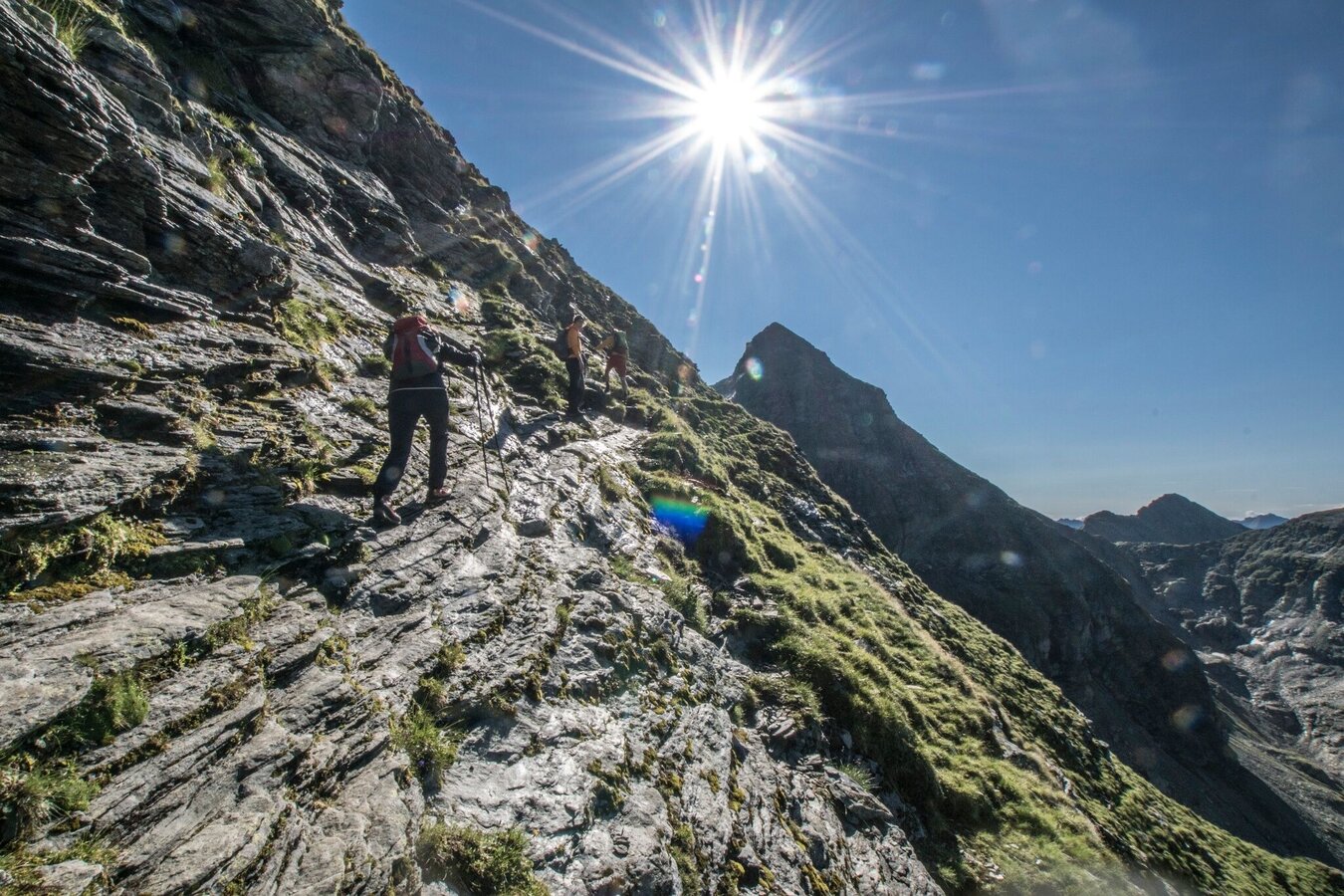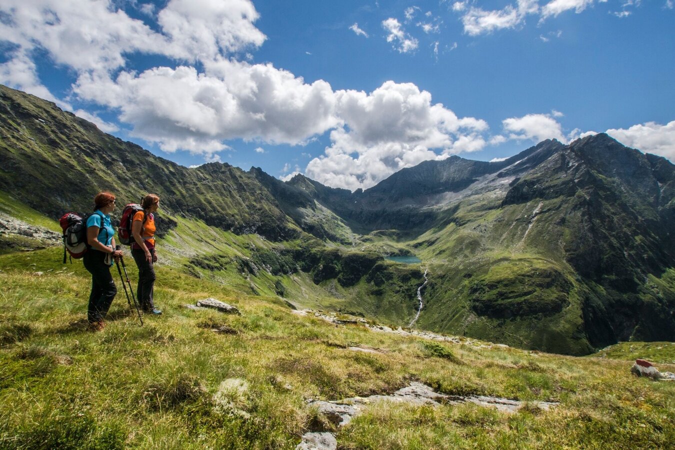 Changes in weather patterns, quick falls in temperature, thunderstorms, wind, fog and snow are some of the dangers that can be encountered on a hiking tour. Hosts of alpine huts and mountain refuges have a lot of experience in the mountains and can give good advice about weather and the trails. Poor equipment, overestimation of one's own capabilities, carelessness, poor personal constitution and/or wrong judgement can lead to critical situations. In case of thunderstorms: avoid summits, ridges and steel ropes.
