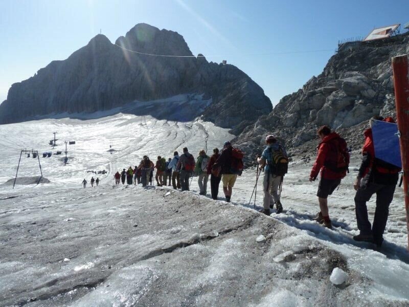 Over the plateau to the valley station of the glacier cable car. Due to the different start and finish points, public transport is recommended.