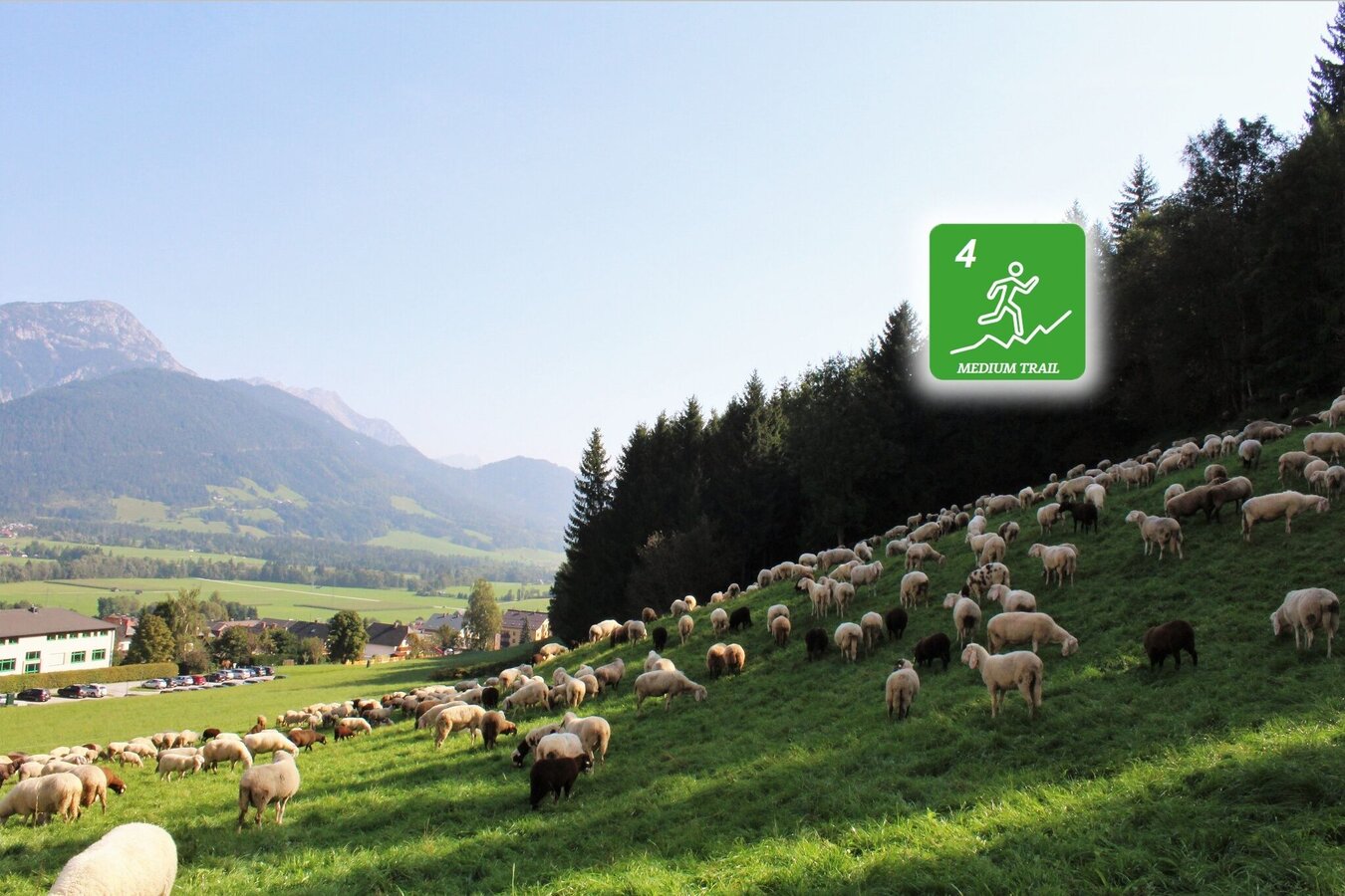 start: Schlossplatz in Haus im Ennstal - Kalvarienberg - Oberhausbergstraße - follow the street until Panoramahotel Gürtl - turn right and follow the path no. 780 to Oberhausberg - Scharlingerhütte - Ernest-Reitzner-Weg - valley station ski lift "Kaibling 6er" - follow the path to the ski lifts "Höfi Express I + II" - path no. 43 to Hotel Höflehner/Gumpenberg - loop road 3 across Hauserberg back to market Haus/Schlossplatz