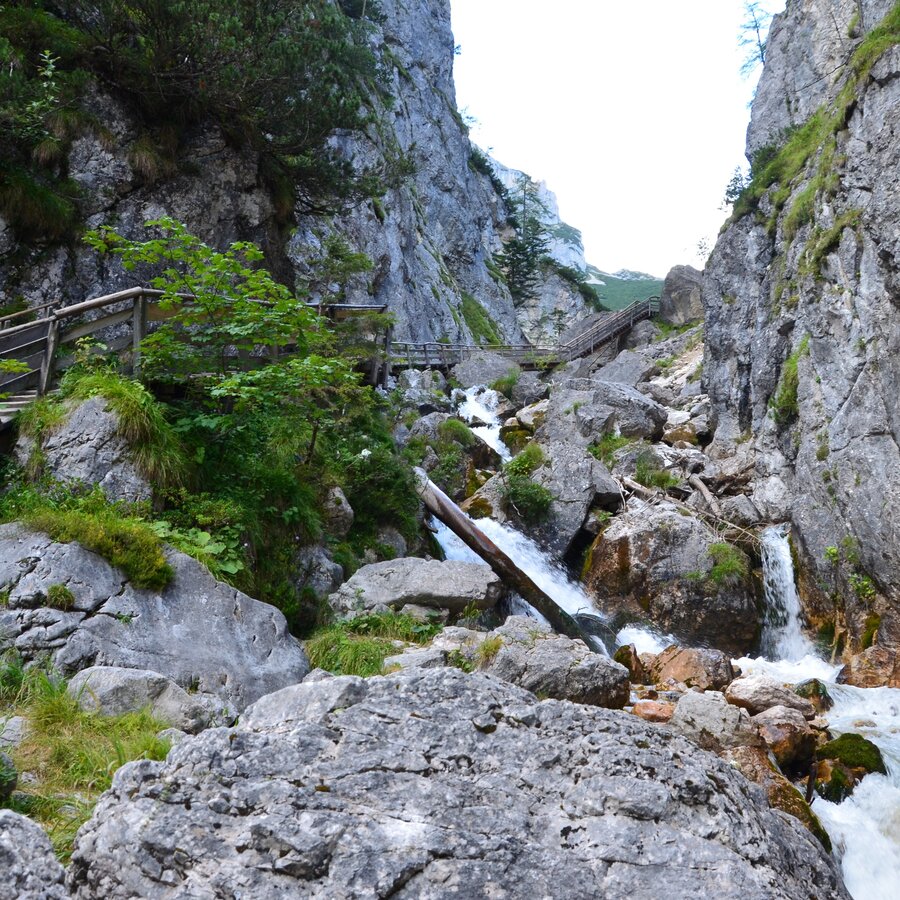 From the highest mountain hut in Styria, the Guttenberghaus, it goes on the "Königsetappe" and through the Silberkar to Ramsau and over the plateau to Ramsau Ort. On the way there are attractive "secondary destinations" such as the summit of the Sinabell, the Silberkarsee or the Silberkarklamm, which easily add 1 to 2 hours to the normal walking time of around 4.5 hours, but are definitely worth the "detour".