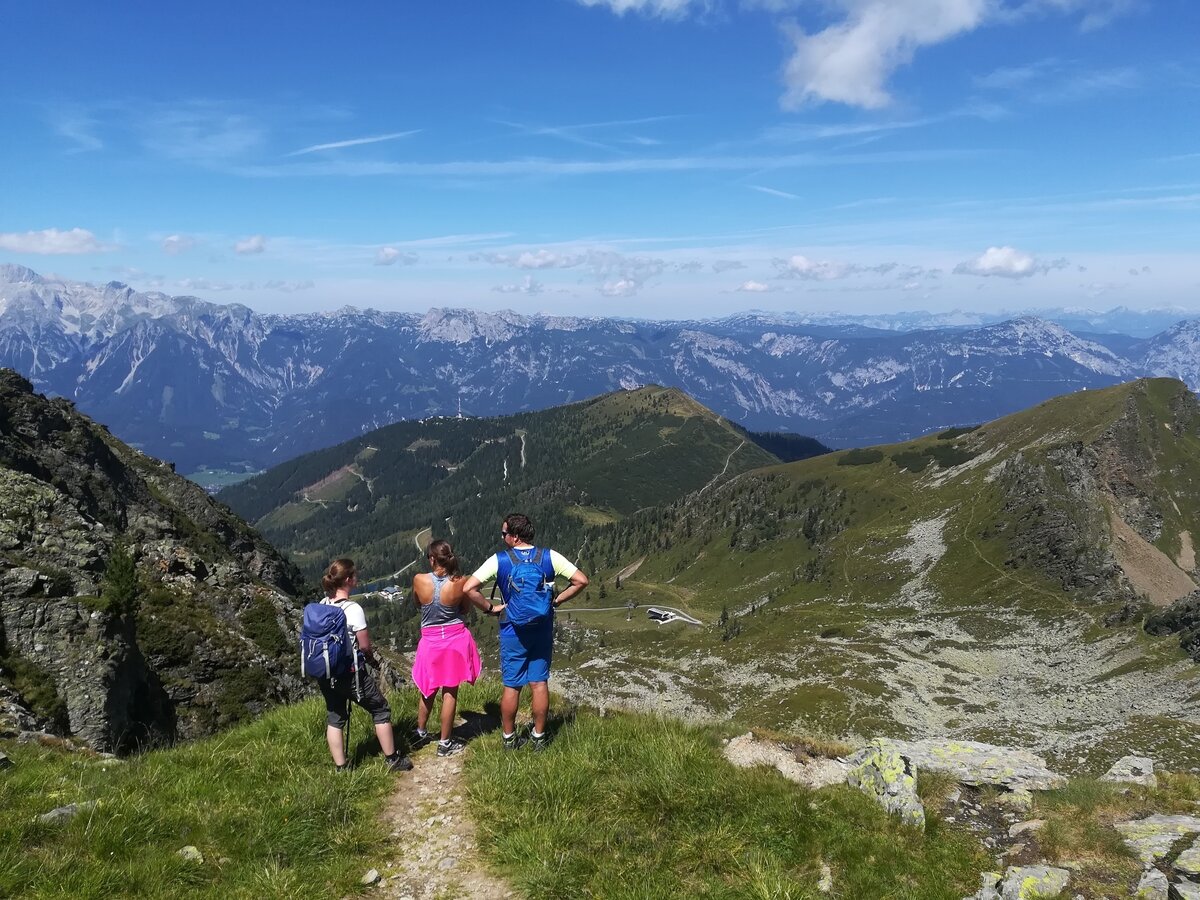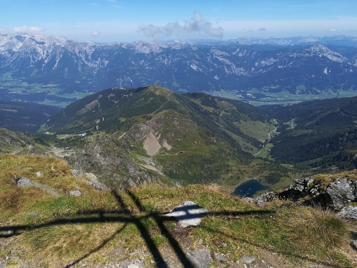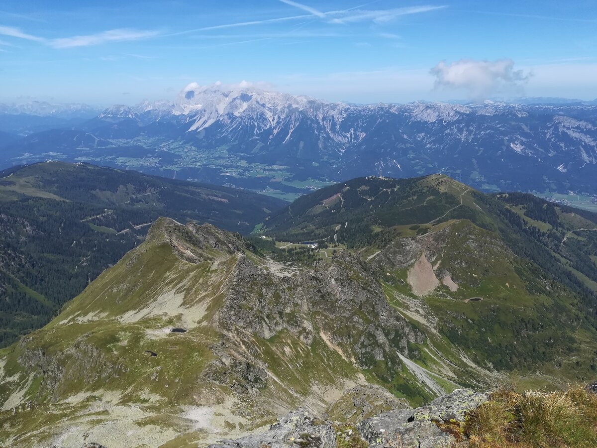 The following cirque looks even wilder and the climb up to the next saddle over scree and rubble is steep and partly secured. Then cross to the Kaltenbachschulter on the south side and ascend over rock steps on the west ridge to the summit. The open location above the Enns Valley and the framing by the highest peaks of the Schladminger Tauern provide a magnificent panorama. The normal way back is via the ascent route back to the cable car. Marking: Trail no. 780 Höchstein.