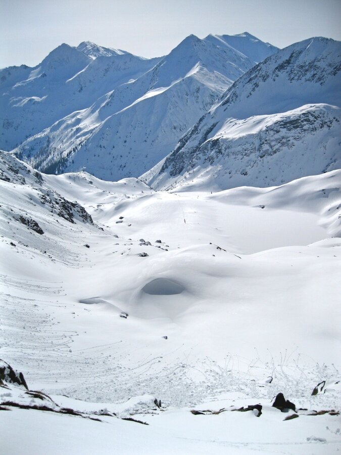 Passing the Erzherzog-Johann-Hütte, this ski tour leads along a forest path and at the beginning of a flat area to the right over a steep ridge in the direction of Schwarzenbach. From there it goes in a westerly direction to the east ridge of the Hornfeldspitze and along the ridge to the summit. Please note the wildlife sanctuary zones