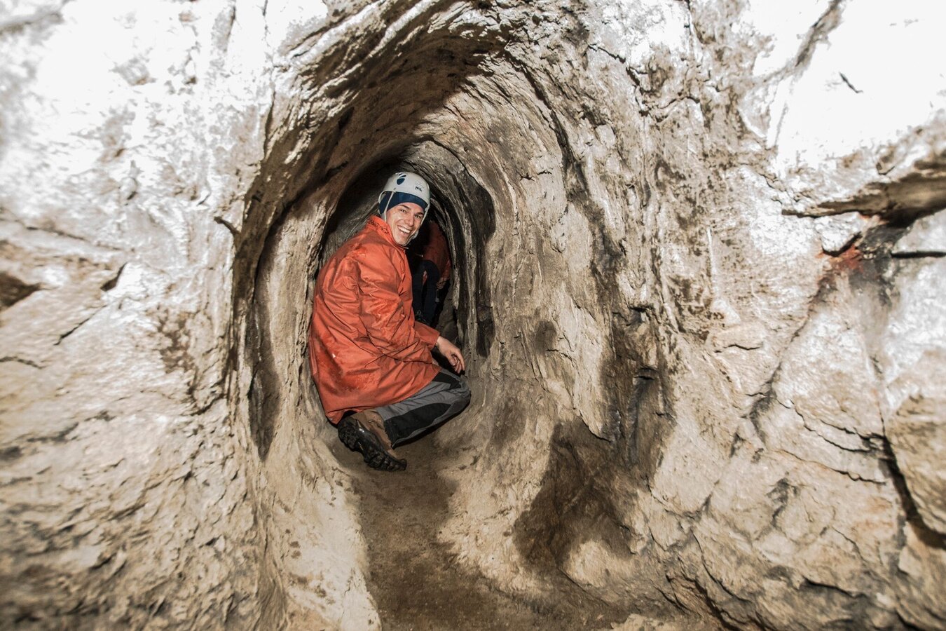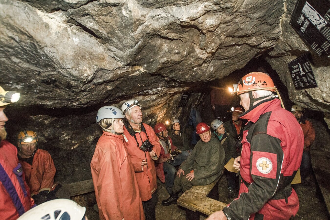 Passing beautiful backfill walls and ore passages, visitors use ladders to reach the higher parts of the tunnel system. The mining methods used over the centuries, such as fire-setting, chiselling and blasting, can be seen everywhere. The very brave choose the path through the air shaft to get back out into the open on all fours at the slightly higher mouth hole.