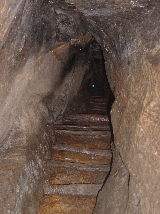 The ascent to the entrance of the mine leads via a quite steep trail over tree roots and stones. Especially when weather conditions are moist or wet, the roots and stones can be very slippery. Take great care!