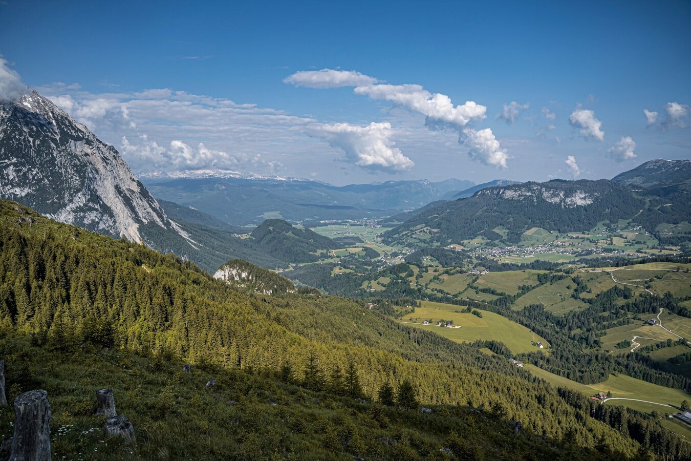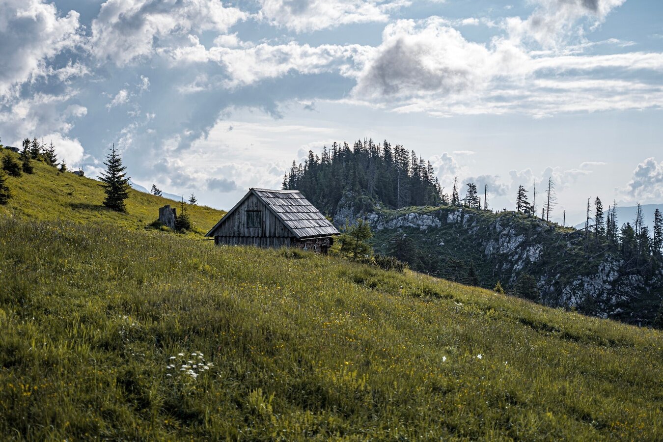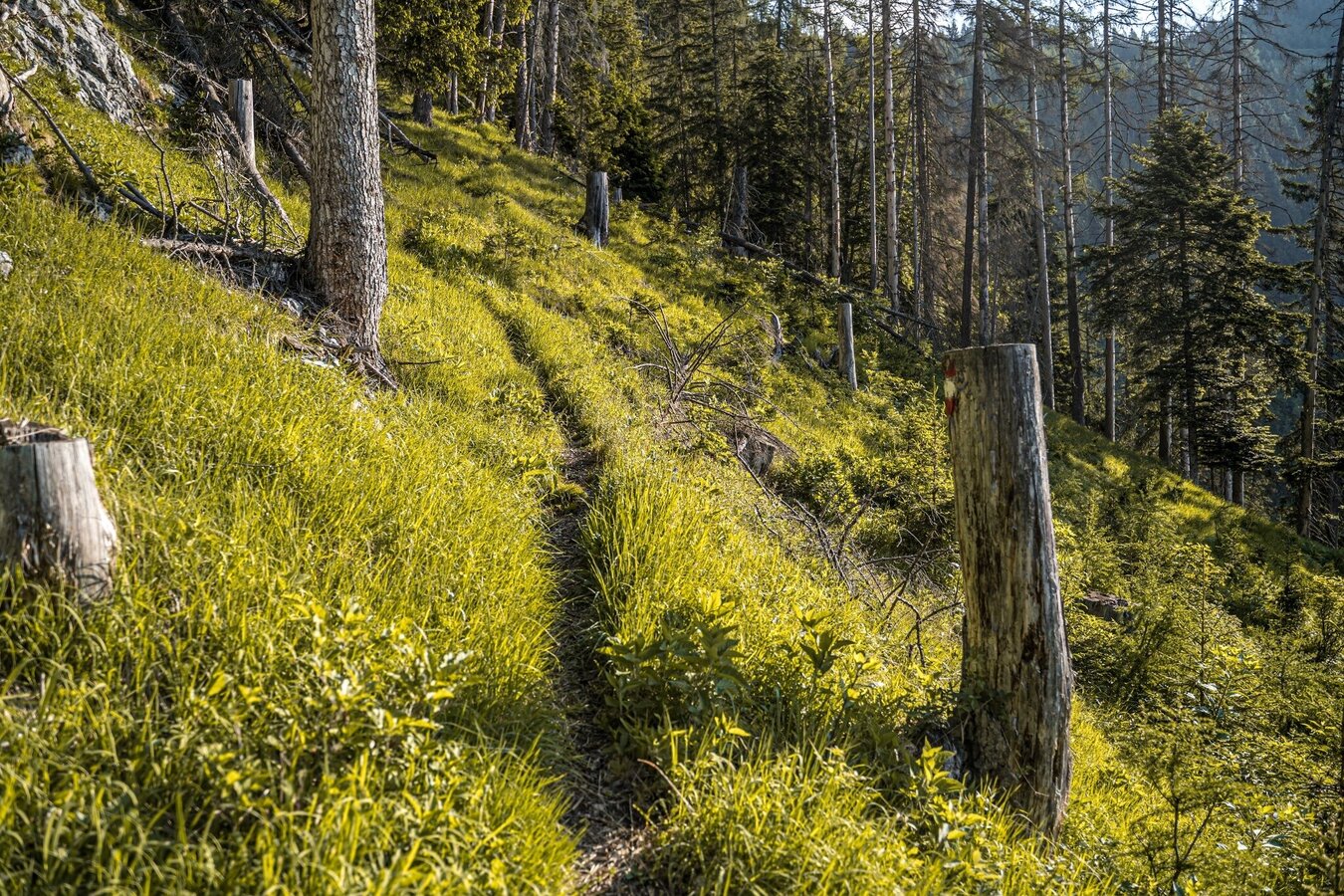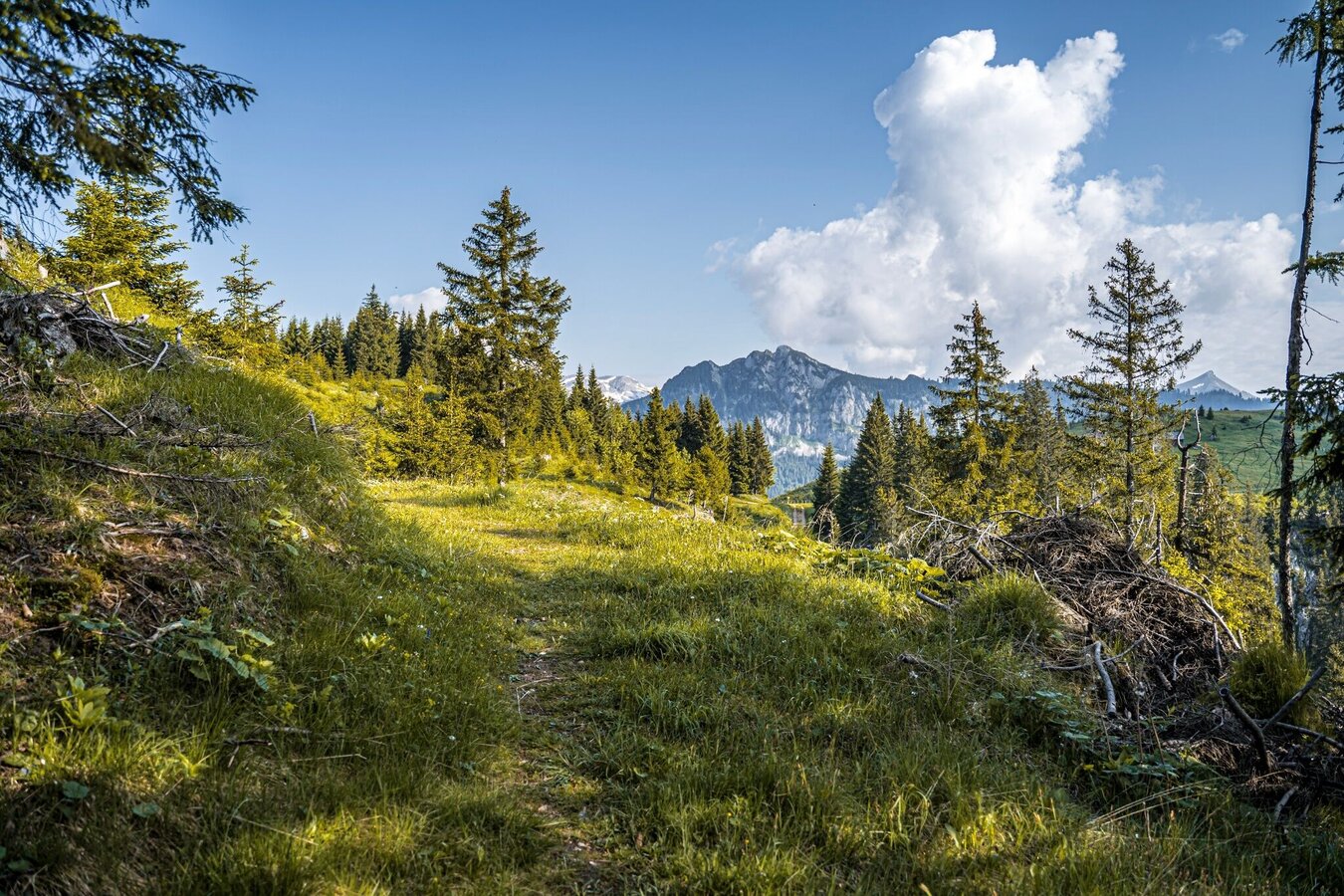 The hike to the Jagerbichl and the Brandangeralm takes you along a variety of paths. From Pürgg you hike along mountain meadows and then into a species-rich mixed spruce forest. Above all, the vegetation on the ground has a lot to offer here with a wide variety of flora. With the Brandangeralm and the Hochalm around the Schröflhütte, two beautiful alpine areas also invite you to linger. From the Brandanger you can also take path #289 for a tour around the Brandangerkogel or a detour to the Leistenstein.