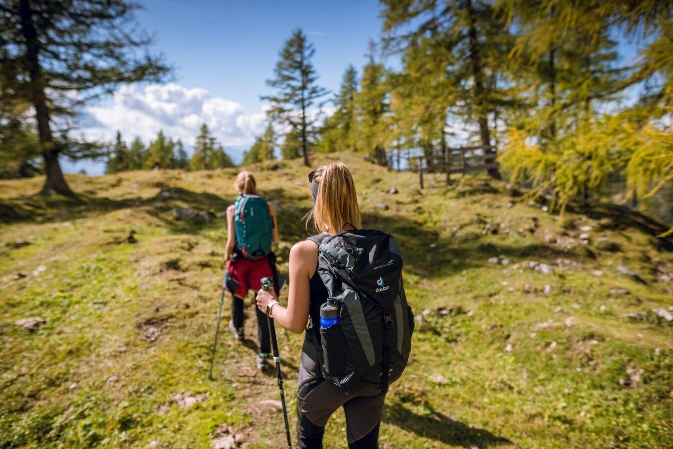 The stone quarry for the material for building the Protestant Church in Ramsau was located near the "Stone Maidens" (Steinerne Jungfrauen). At the bench at the lower end of the Gamsfeldgassl you can enjoy a magnificent view over the Ramsau plateau and over to the Schladminger Tauern. The Jungfrauensteig is a steep, gravelly path, but sure-footedness is essential.