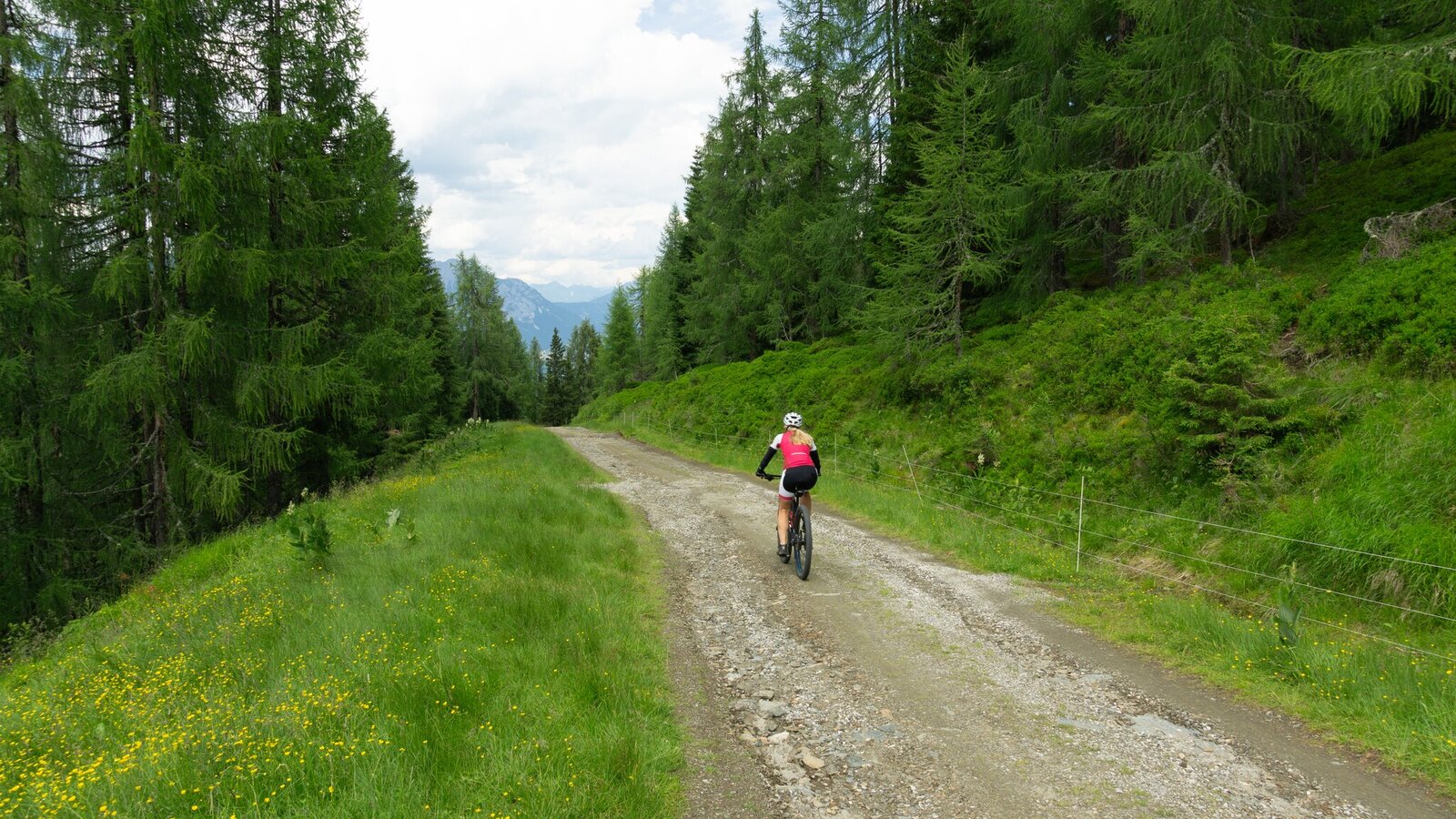 The tour starts at the valley station of Hauser Kaibling (Sport Hauser Kaibling) and first leads into the center of Haus. Here, the long climb to Oberhaus begins. From there, the route continues on a well-maintained gravel path all the way to the summit. Those who conquer the more than 1000 meters of elevation gain are rewarded with a fantastic view of the Dachstein, the Grimming, and the Ennstal. At the top, several guesthouses invite you to take a well-deserved break.