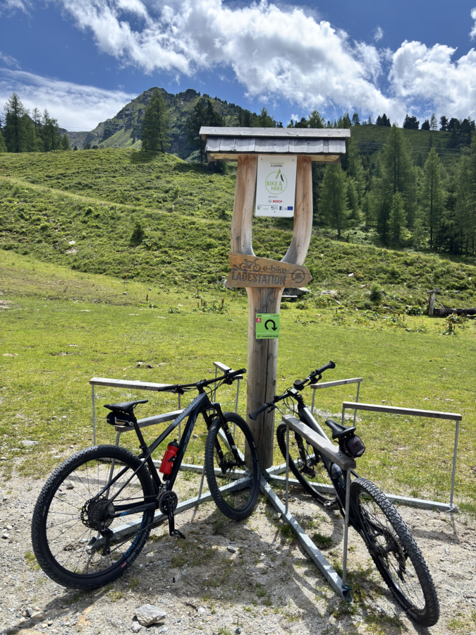 Chargers for Bosch e-bikes are available at the the Seewigtal Stüberl (parking area Steirischer Bodensee).