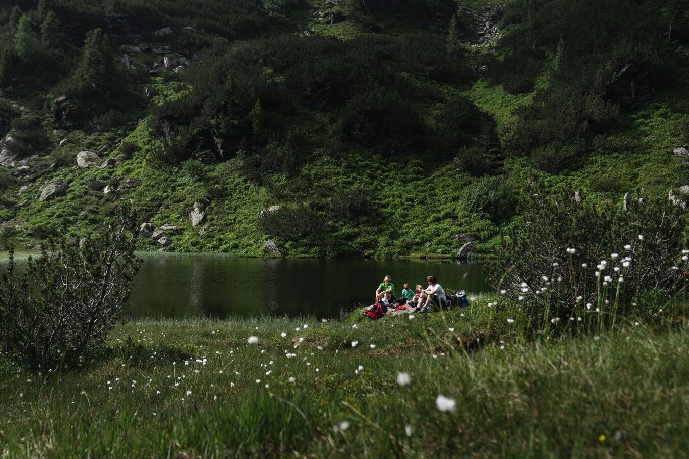 At Gasthof Grimmingblick you start out, first over the stony path - some would also call it "Bergbacherl" - to the plateau. Continue past high mountain pine fields until you see it on the left in the reed bed: Lake Kothüttensee. A feast for the eyes.