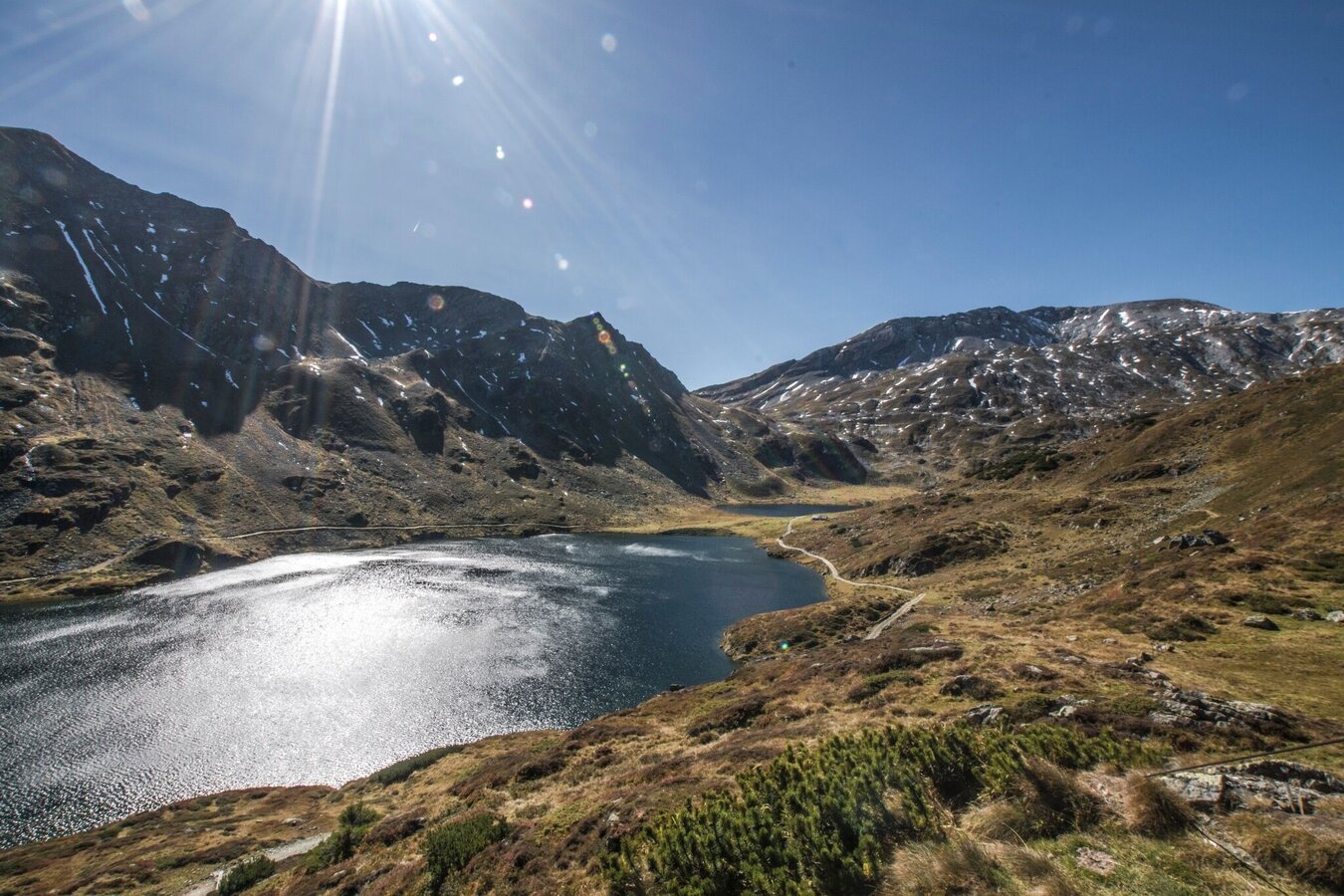 After your overnight stay at Giglachseen lakes - either Ignaz-Mattis-Hütte or Giglachseehütte - you start out on trail n° 702 and walk along the Giglachseen Lakes on trail n° 702. At the Northeast shore of the bigger Giglachsee Lake you reach the trail junction with trail n° 776 which you follow for a bit and then continue on trail n° 775 along the slopes of Grobfeldspitze, Giglachalmspitze and Murspitzen. Via Murspitzsattel mountain saddle you reach Ferchtlhöhe ridge from where you get a great view of Duisitzkarsee Lake.
