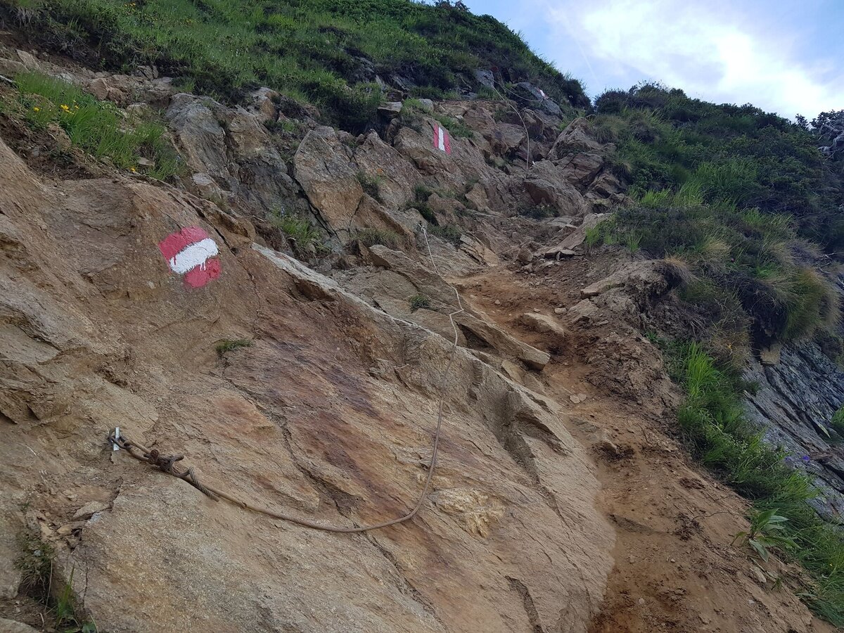 Available GPS data - just like hiking maps - is only a guidance for orientation and can never depict a trail exactly with all its details. Especially at dangerous spots it is essential to judge on site how to proceed.