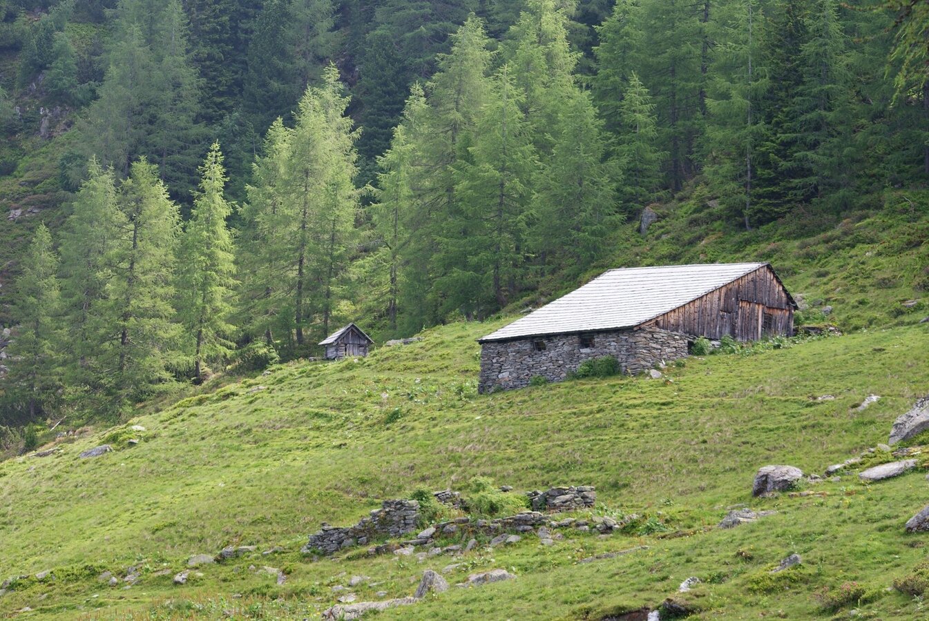 Due to a primeval rockslide the area between Obere Moarhofalm and Obere Neudeggalm can hardly be used for forestry operations. Thus, this part of the trail takes you through a primeval forest with numerous old spruces, larches, and Swiss stone pines. Caused by the location the trees often have a special habit. At Obere Neudeggalm you turn-off on trail n° 773 and hike up to Latterfußsattel mountain saddle where you continue on the other side of the saddle on path #773 downhill in the direction of Rohrmoos/Hochwurzen cable car valley station.