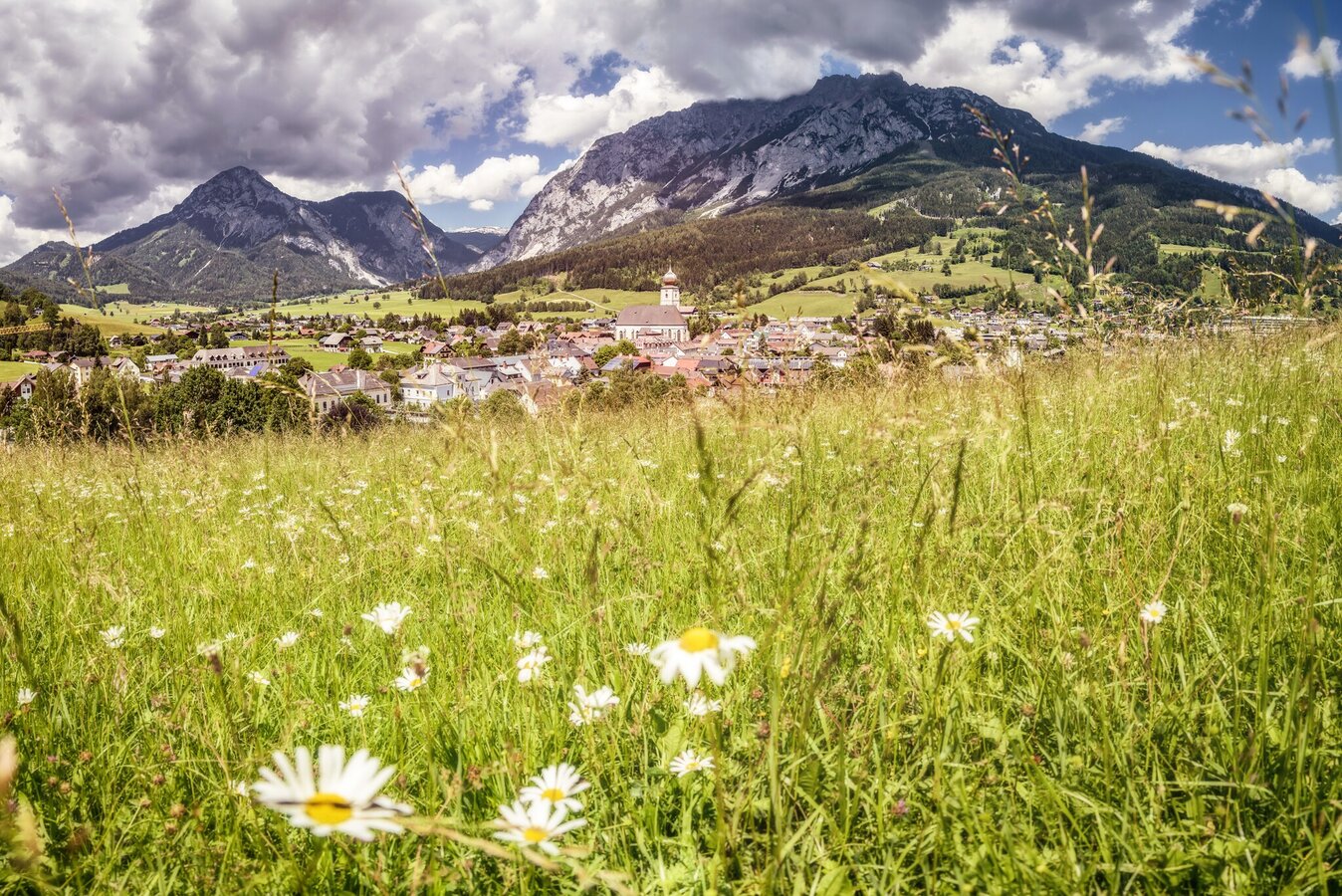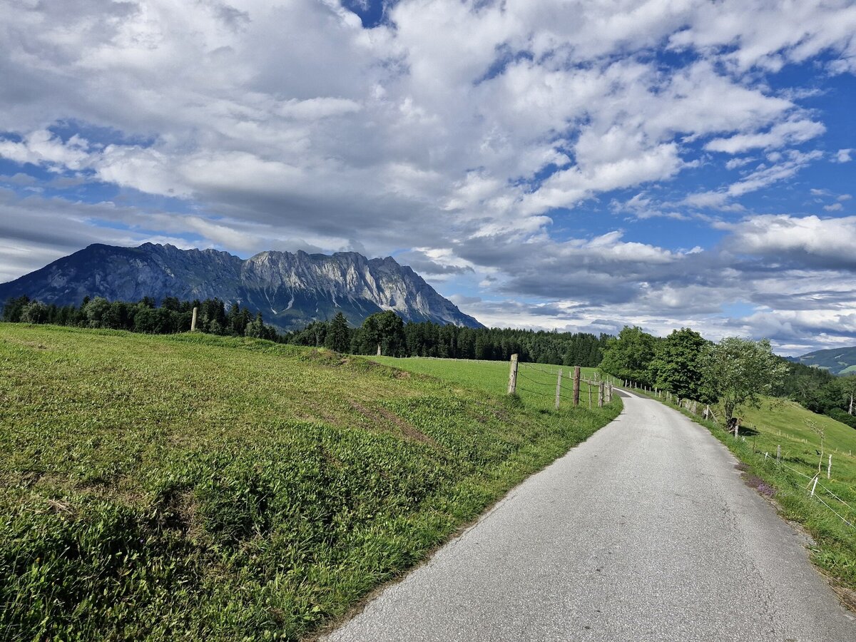 This relaxed circular tour starts in Gröbming and takes you up to the Mitterberg. From there, it continues through the idyllic villages of Kaindorf, Matzling, Tipschern, and Berg to Gersdorf, before finally returning to Gröbming via Kaindorf. On well-paved asphalt roads, you can enjoy the tranquility of low-traffic routes and the impressive panorama of Stoderzinken, Kammspitze, and Grimming – perfect for anyone looking to spend a delightful day in nature.