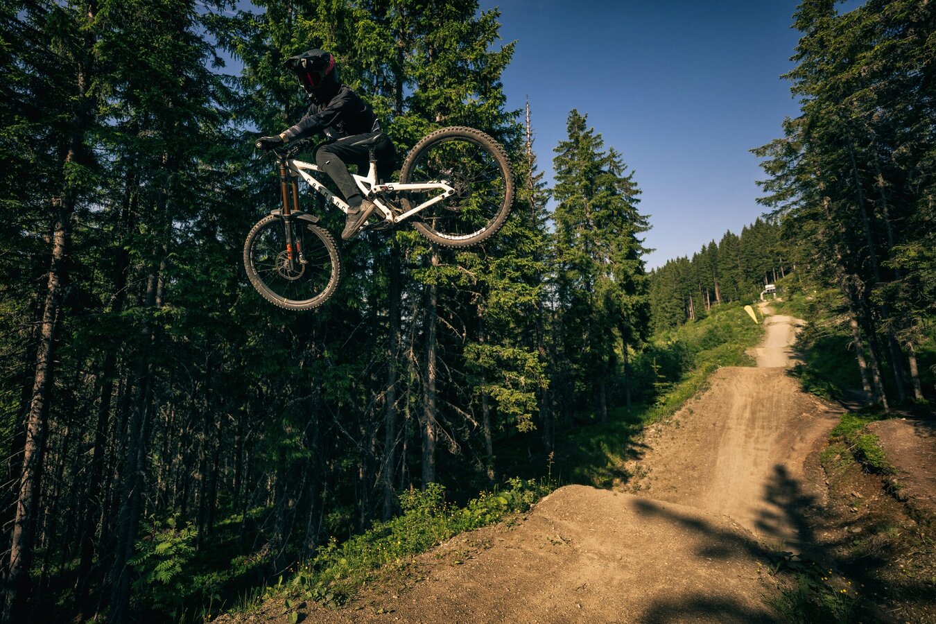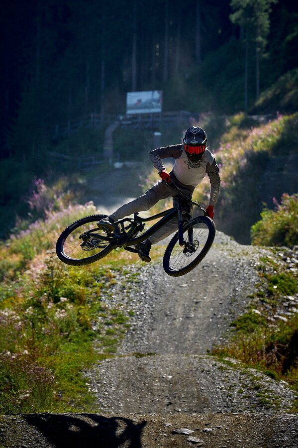The Monster Jumpline is the crown jewel of the Schladming Bike Park – built for everyone who loves big jumps. Clean shapes, massive tables, and continuous flow make this line a true highlight for experienced riders. Although the trail isn’t technically difficult, it does require solid jumping technique. You can expect massive booters up to 12 meters long.