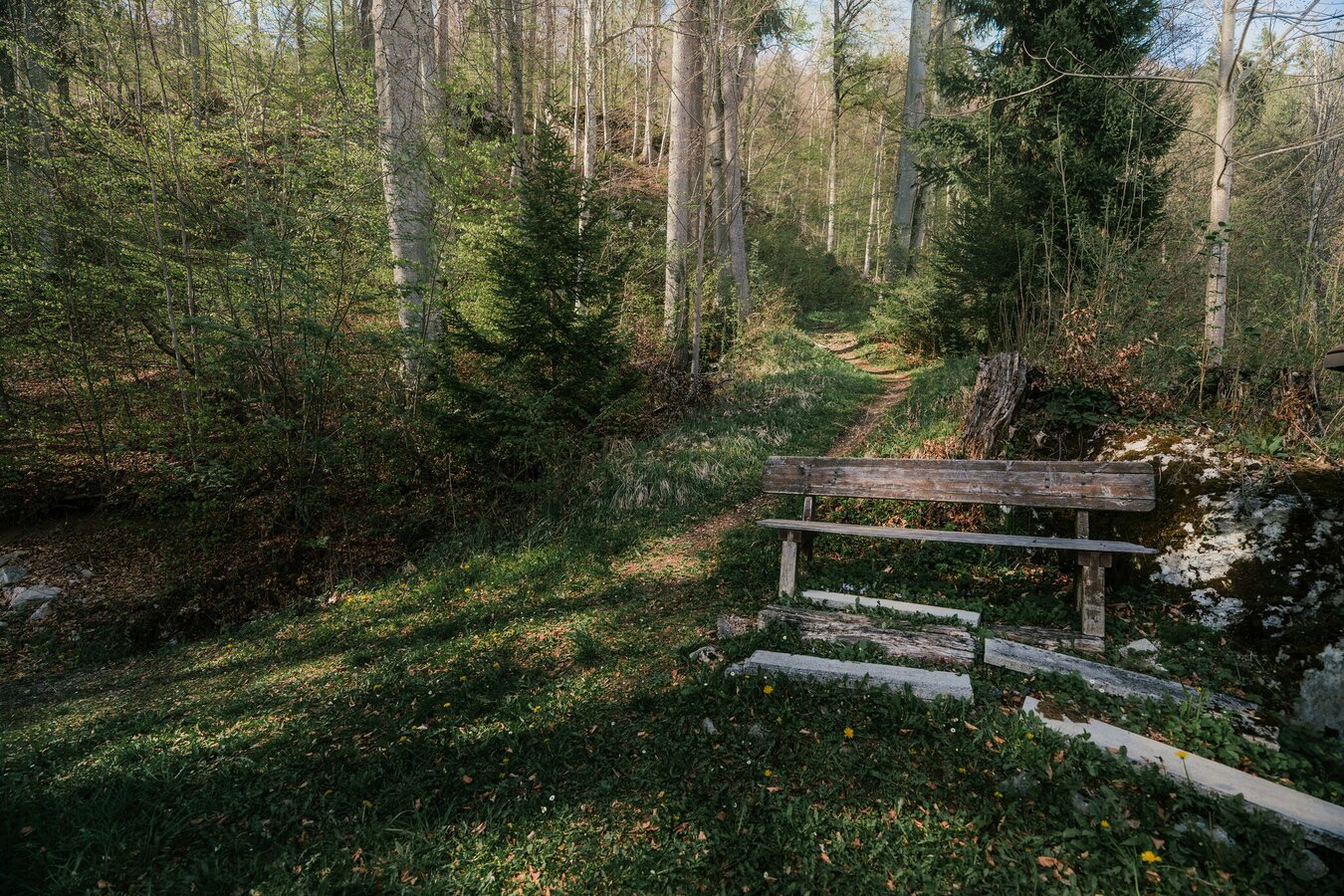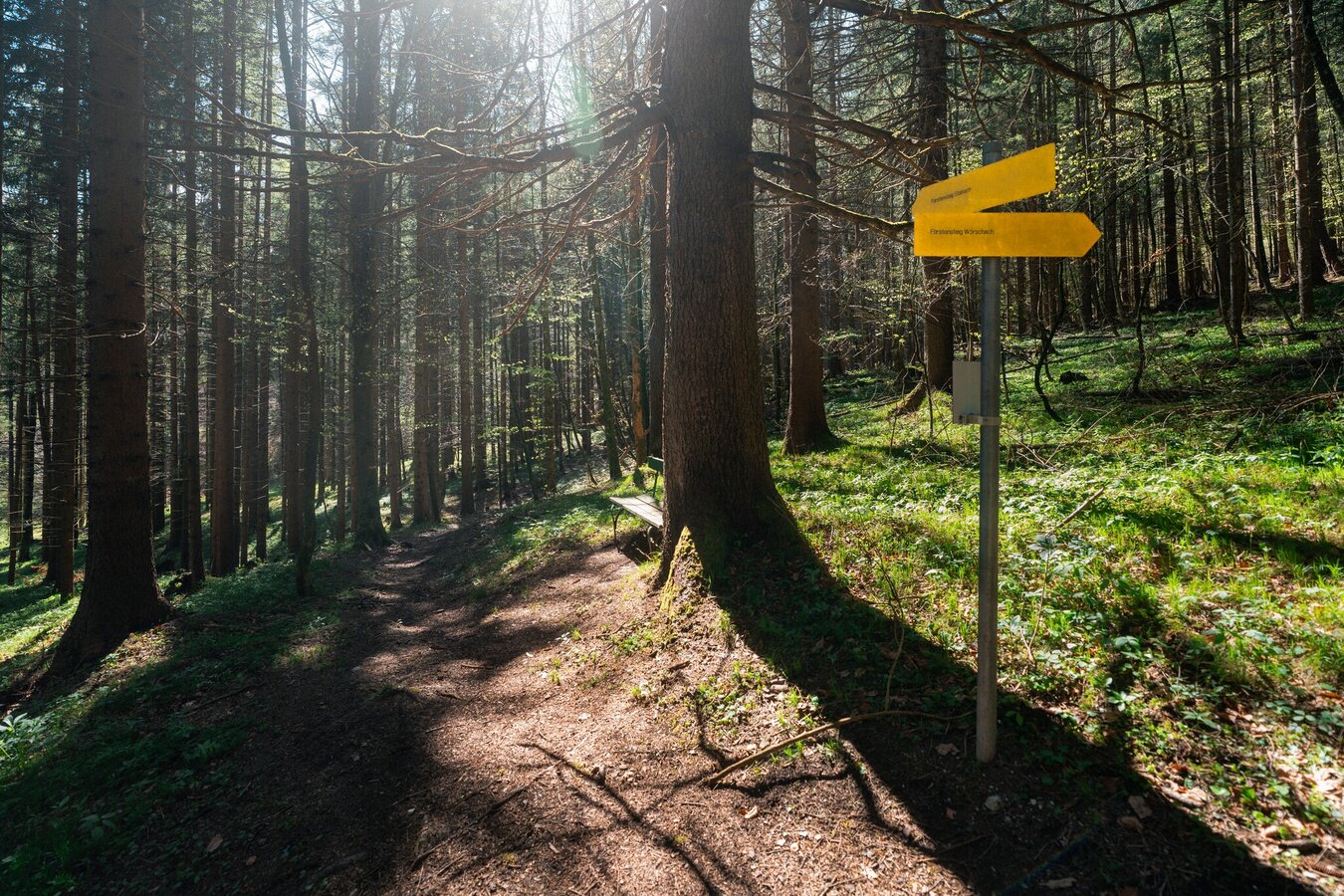 Take the entrance to Niederhofen and pass the cemetery with its beautiful church until you reach the crossroads. There, make a left up to the start of the Fürstensteig. At the end of the road, take the meadow path up to the Fürstensteig, which you then follow in an easterly direction to Wörschach. After a few minutes, you will reach the 4-Elements Nature.Power.Place at Friedstein Castle. Continue along the Fürstensteig trail, crossing the Lunglgraben with its little stream. Shortly afterwards you reach the rock-water nature.power.place. From there, it is only a few minutes back to the Wörschach municipal office.