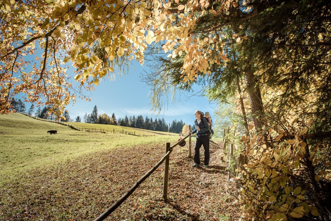 Von dort folgt man der Straße Richtung Kunagrünberg hinauf zum Klemmerhof. Hier beginnt ein Hohlweg, der bis zum Baumhoroskopweg führt. Gesamtgehzeit: 3 Std.