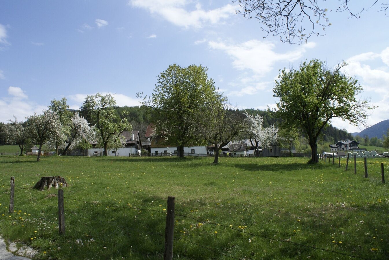 The hiking trail itself runs along the edge of the forest on the meadow downhill to the horse farm. At the end of the field path you cross a fenced pasture - please close the passages again. Please be careful if you have a dog with you. After crossing the pasture, pass a few houses and return to the starting point on the same path.