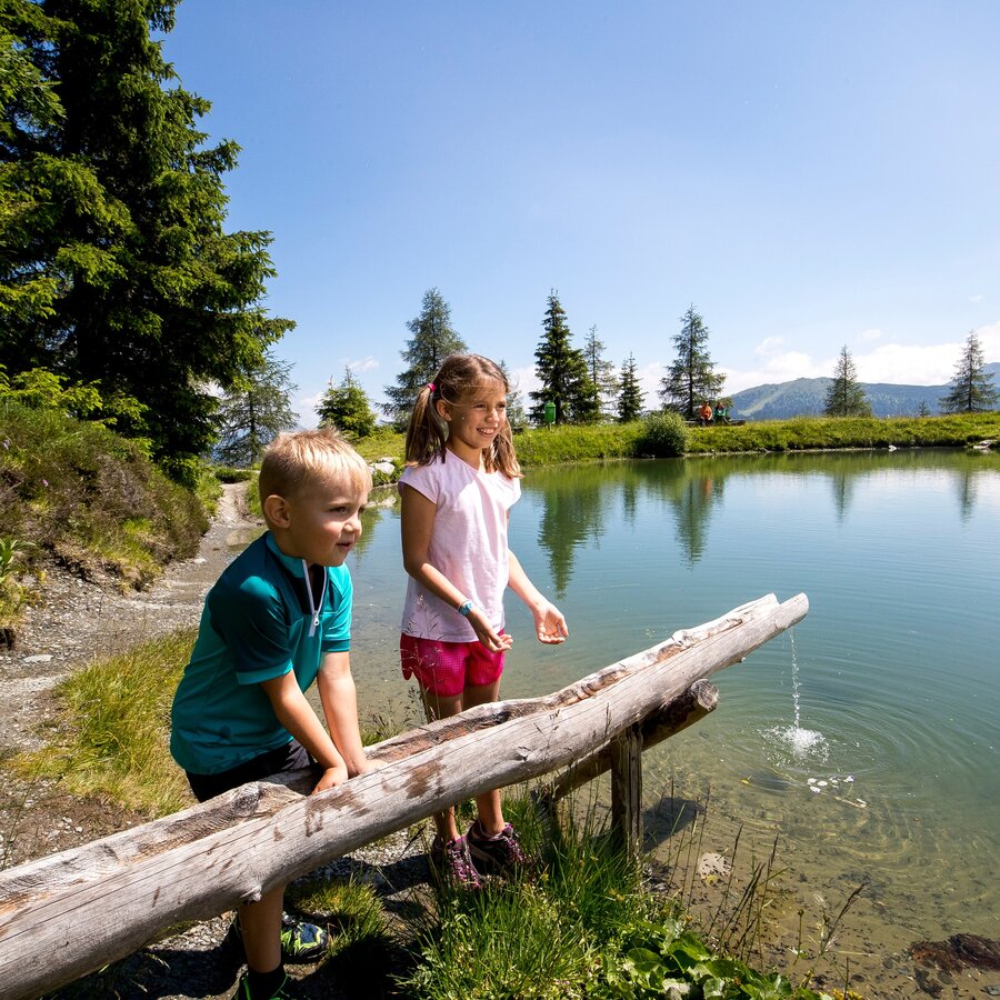 This variety-filled, almost flat loop takes you around Planai summit, serving up magnificent views of Ennstal valley, the mountain world of the Schladminger and Hohe Tauern, Dachstein massif and the Ramsau plateau. After just a few metres, you will reach the “Place of Reflection” by small, idyllic Planai tarn. To mark the 25th anniversary of the Planai-Hochwurzen lift company, the walkable wood sculpture in the form of a cross was built here.