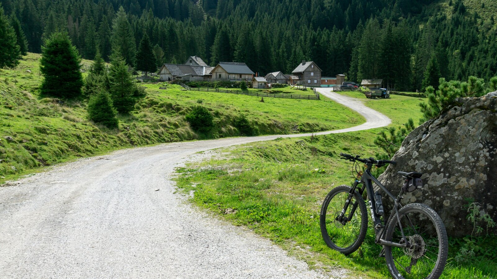 On the forest road, exercise caution – there are several sharp bends and potentially slippery sections. Once you reach the valley floor, the route continues on asphalt towards Donnersbach. Near Fuchsberg, the route switches back to a gravel path for the final kilometers, bringing you back to your starting point at the village square.