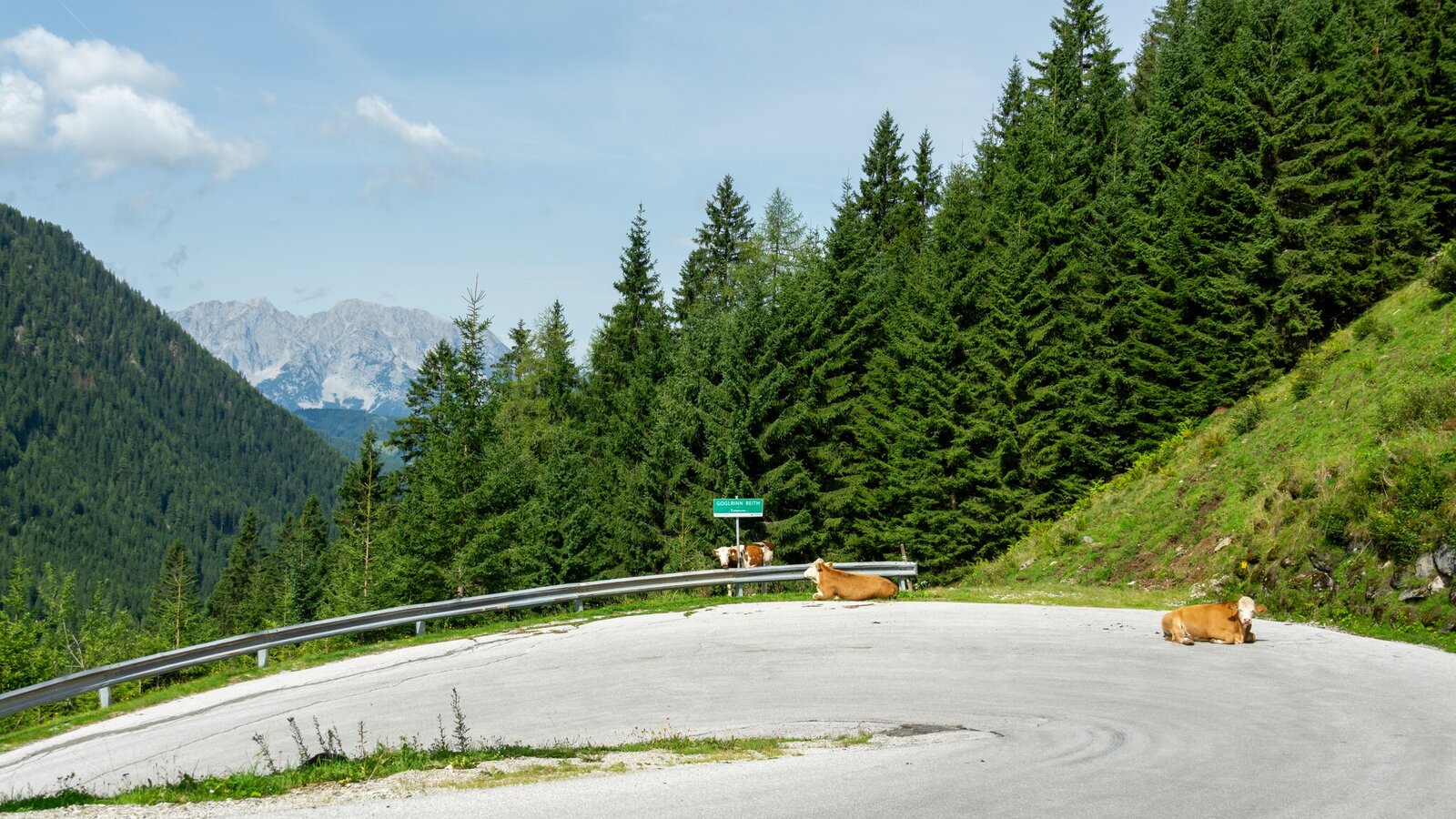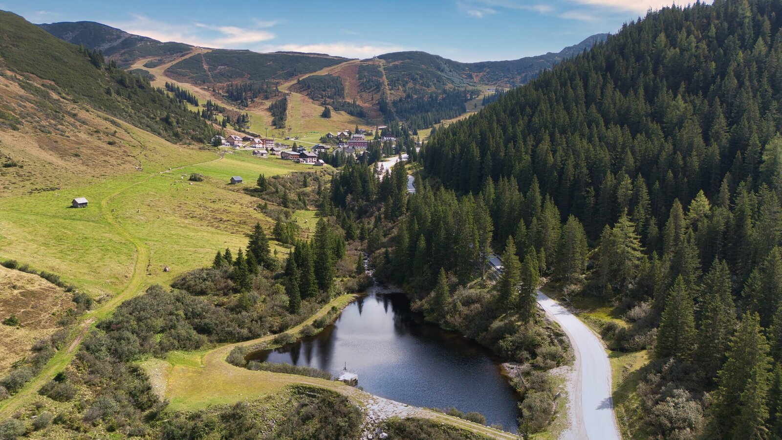 The descent takes you through stunning mountain scenery towards Donnersbach. At the Schaab Reith hairpin, turn left – Important: This section is only open from June 15 to September 30 to protect the local wildlife. If the path is closed, please follow the paved road downhill instead.