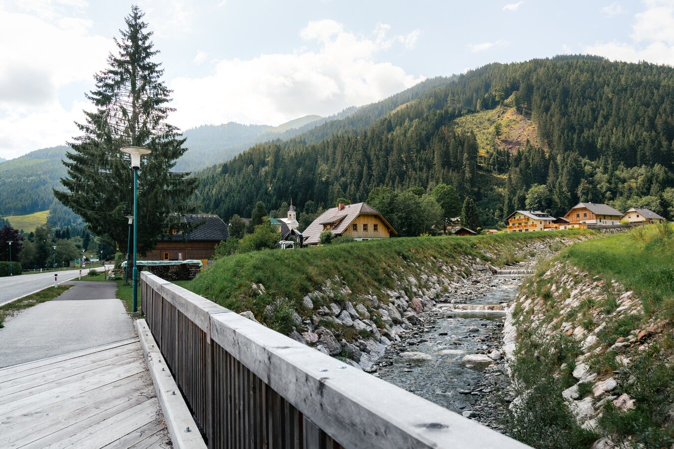 Coming from the B320, at the traffic circle Trautenfels in the direction of Irdning. Then direction Donnersbach, Donnersbachwald.Free Parking at the village center Donnersbachwald.