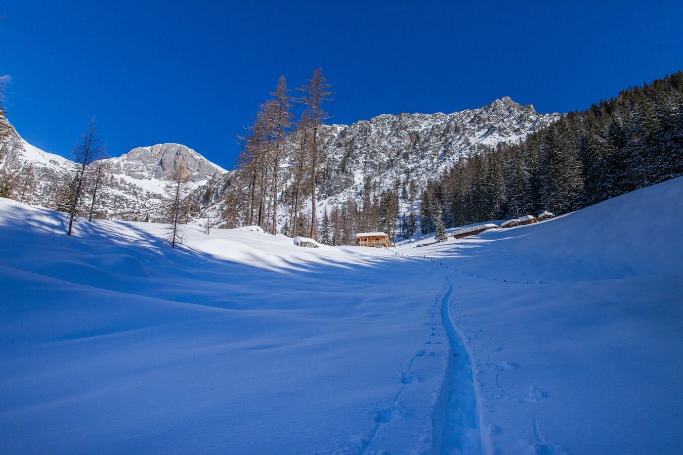 From the starting point via the Lärchbodenalm to the Guttenberghaus, which is not open in winter. From there, continue via the Gruberscharte into the Landfriedtal and from the north to the summit of the Scheichenspitze: the ascent to the summit is done without skis and with crampons. Descend via Edelgrießhöhe and from there along numerous downhill options or back to Gruberscharte and along the ascent route.