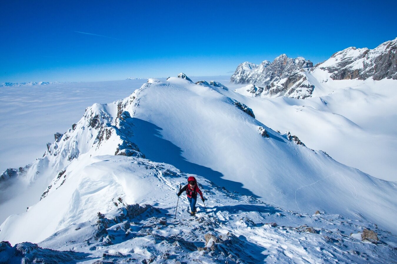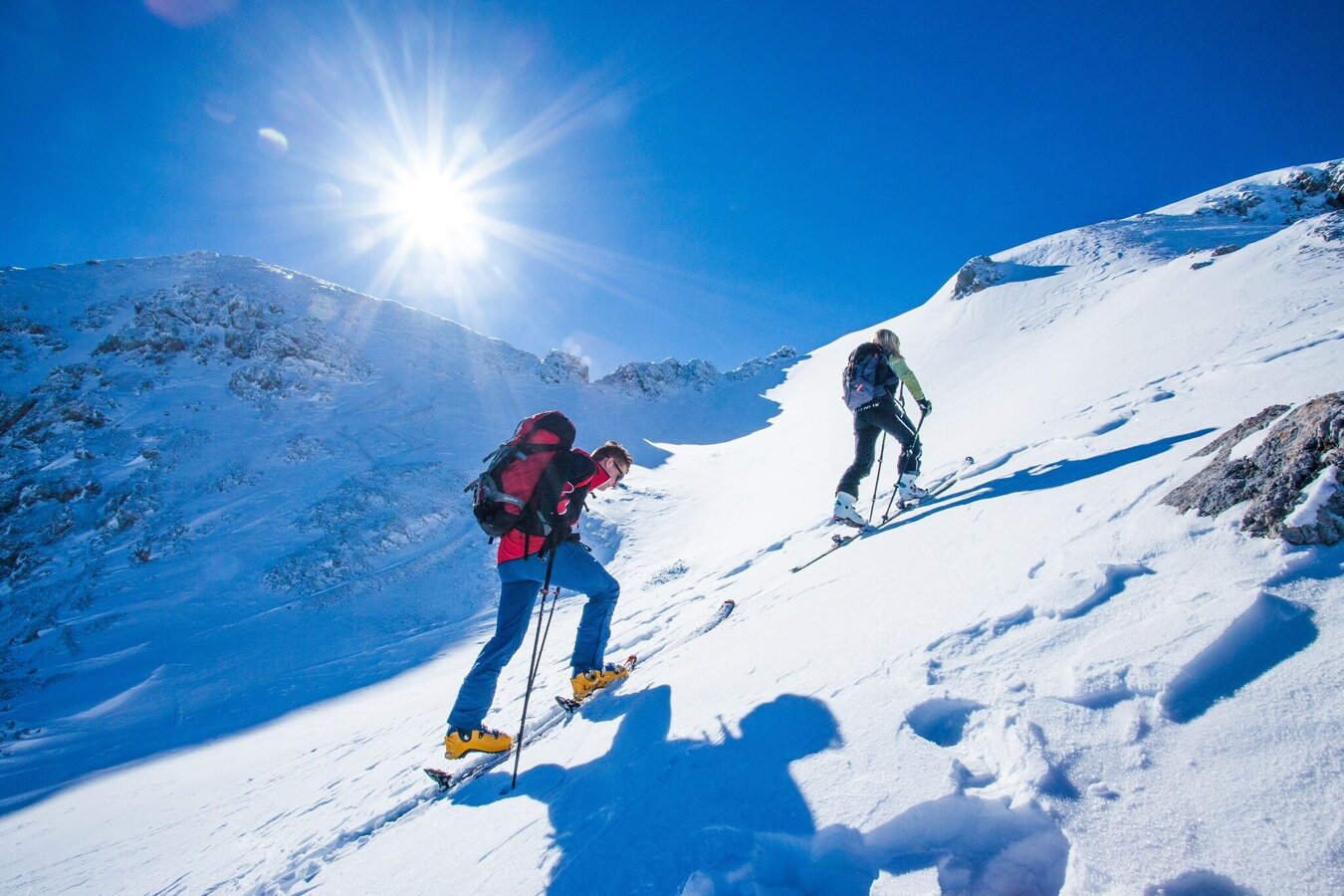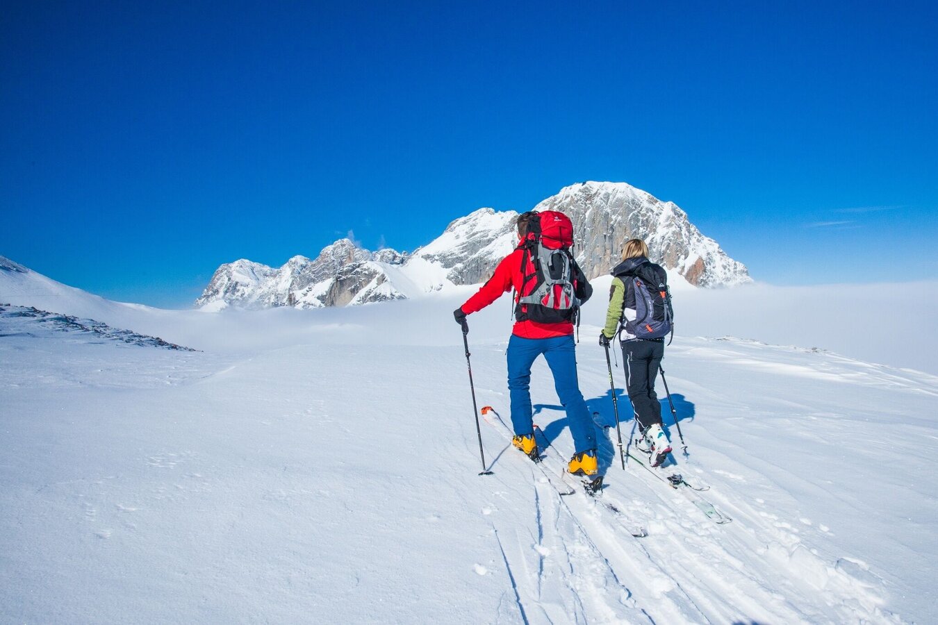 - Ski touring equipment consisting of skis/splitboard, skins, poles and possibly crampons. (Additionally for tours on the glacier or Dachstein: glacier equipment, via ferrata set)