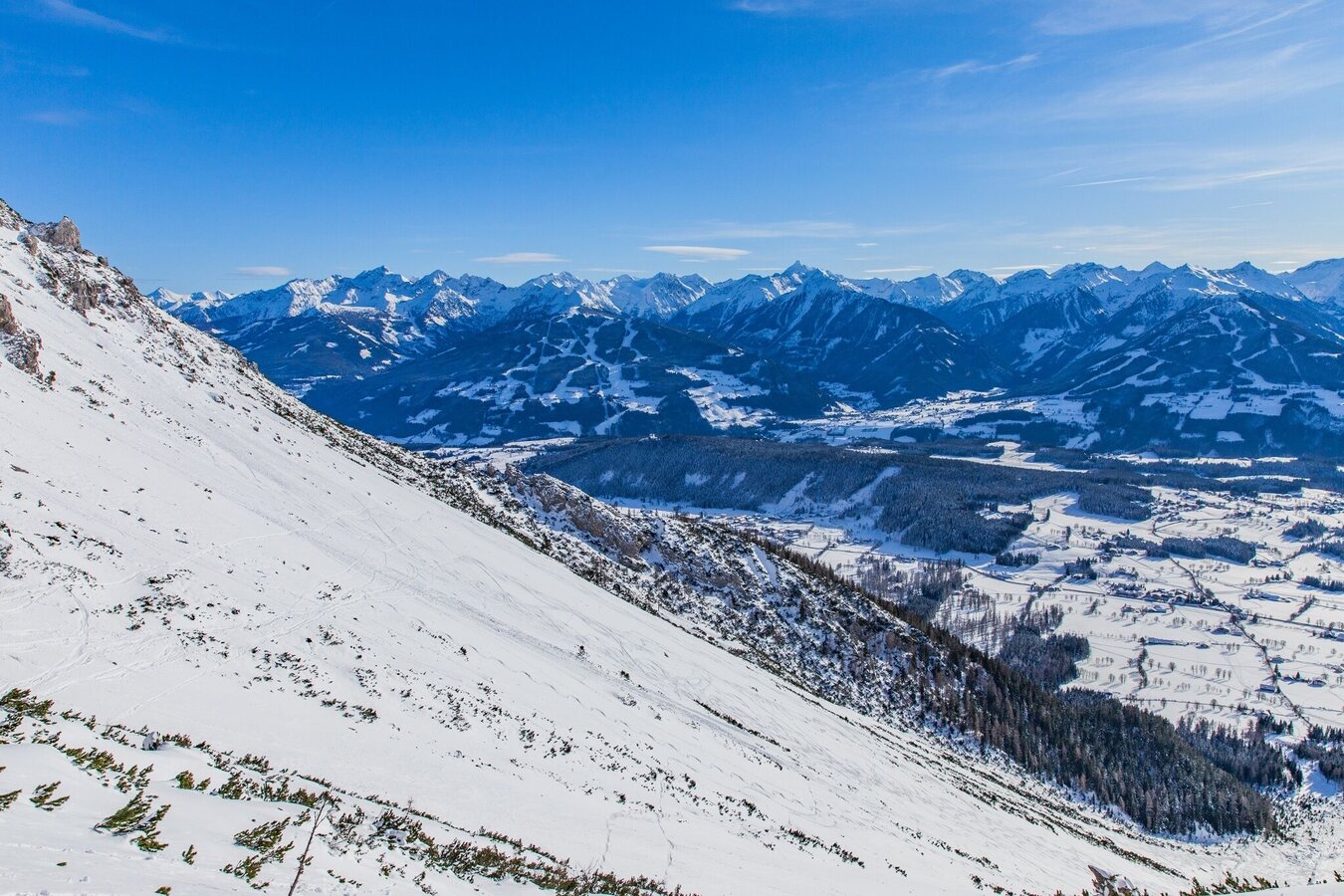 The high alpine ski tour to the Scheichenspitze first leads up towards the Lärchbodenalm, then over the Tiefkar to the Guttenberghaus and from there towards the Gruberscharte - continuing through the Landfriedstal and finally over the northern ridge up to the summit. From the summit of the Scheichenspitze, head back down the partly secured ridge into the Landfriedstal valley, from where a short ascent towards Edelgrieß begins. The descent then goes down through the Edelgrieß and ends at the SkiWilly/Rittislift bus stop.