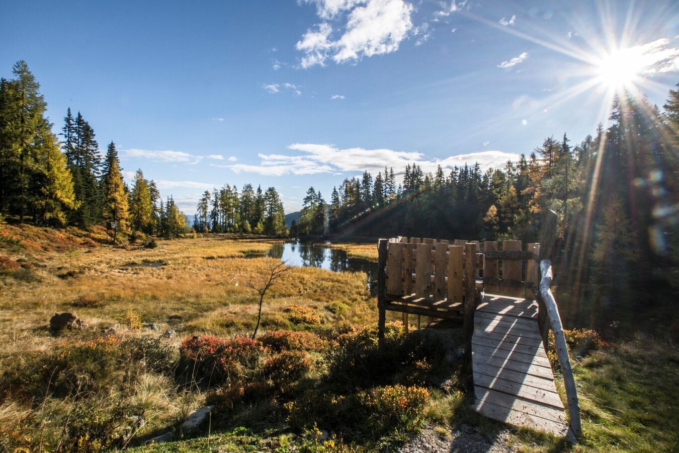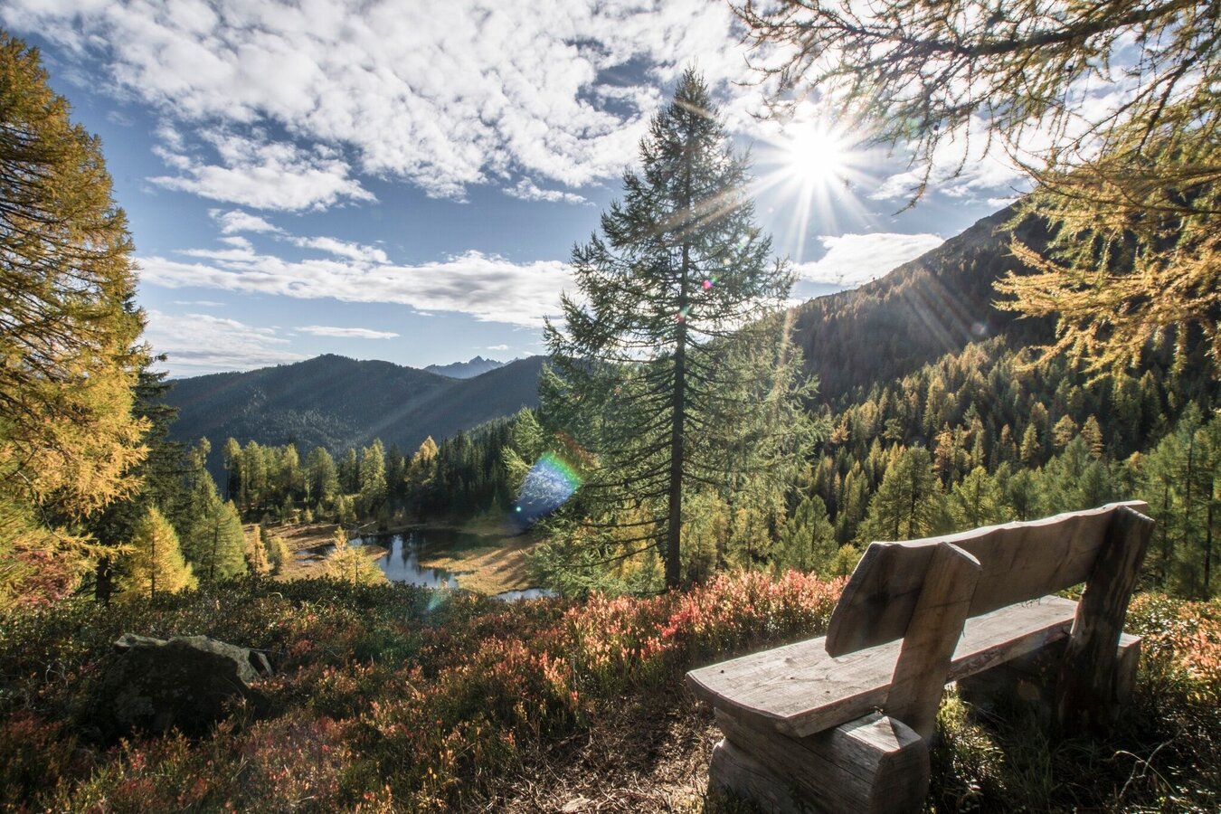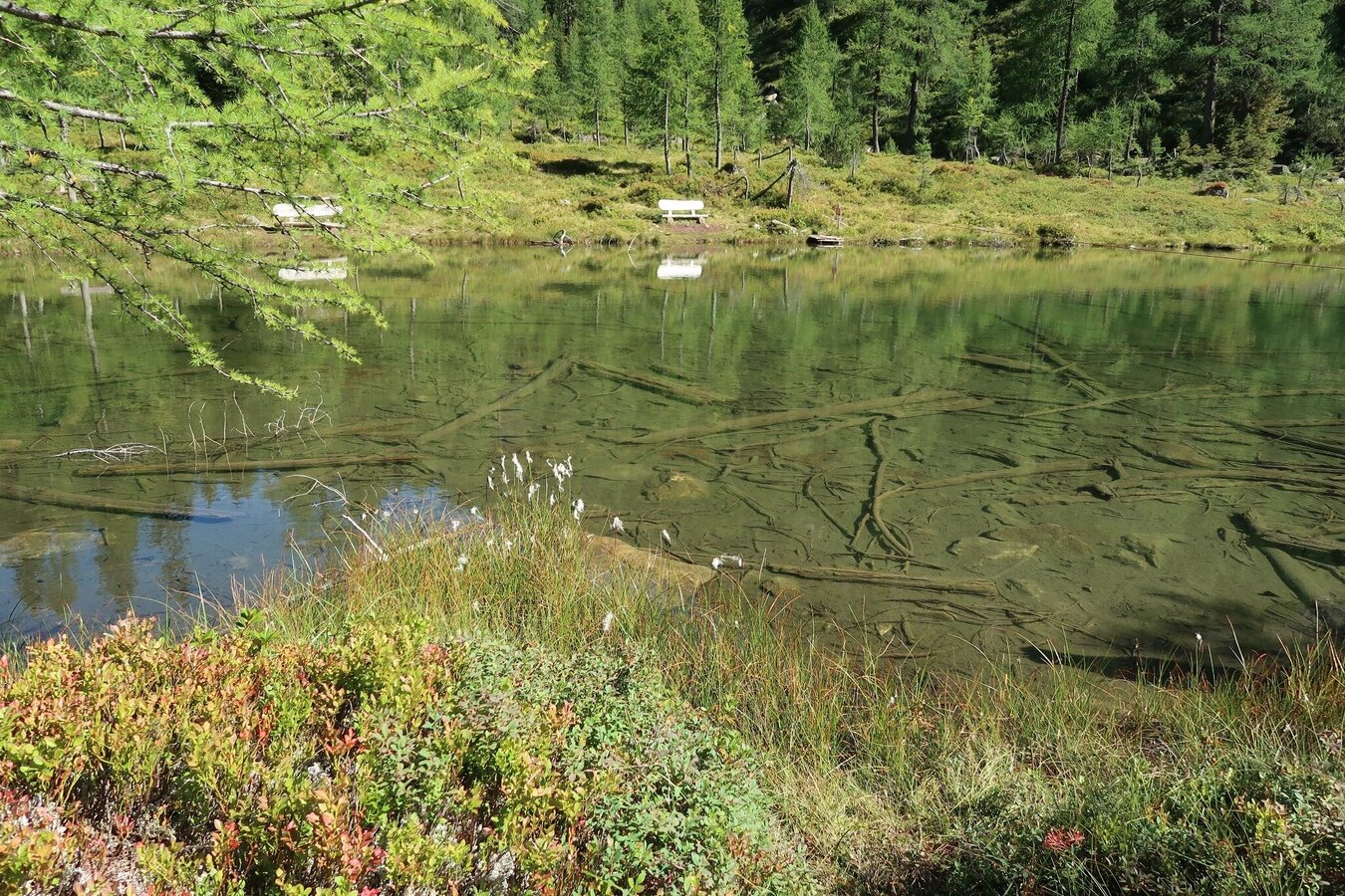 Follow the path downhill over a few hairpin bends until you reach a small lake after a short hike - affectionately called ‘Glackerch’ by the locals. Continue through the sparse forest to another small lake - the Waldsee. Here, an idyllic bench invites you to linger.