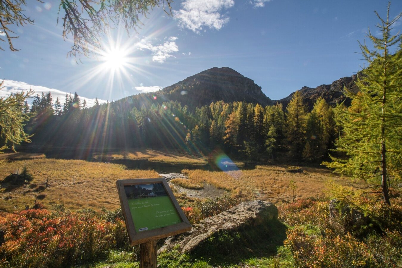 Changes in weather patterns, quick falls in temperature, thunderstorms, wind, fog and snow are some of the dangers that can be encountered on a hiking tour. Hosts of alpine huts and mountain refuges have a lot of experience in the mountains and can give good advice about weather and the trails. Poor equipment, overestimation of one's own capabilities, carelessness, poor personal constitution and/or wrong judgement can lead to critical situations. In case of thunderstorms: avoid summits, ridges and steel ropes.