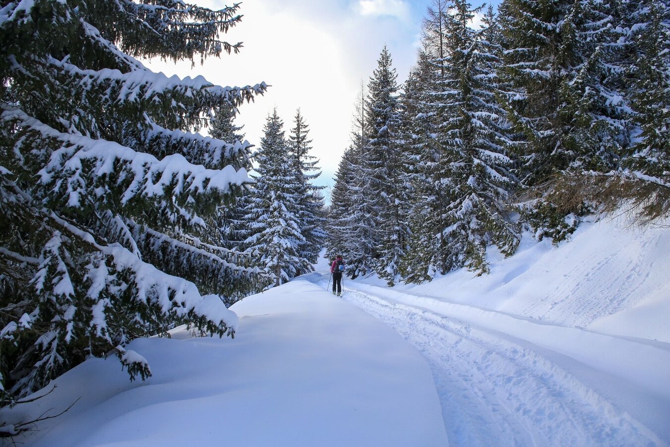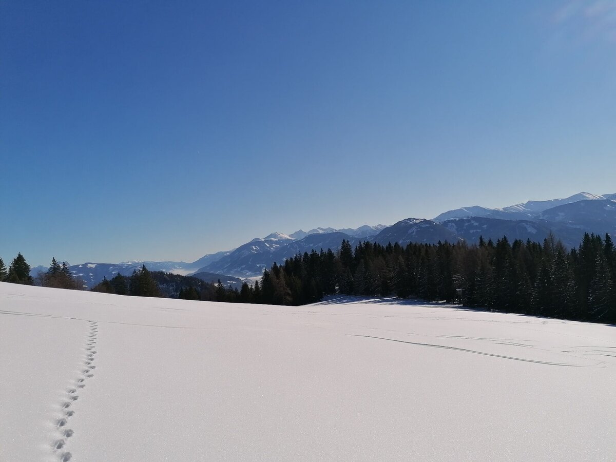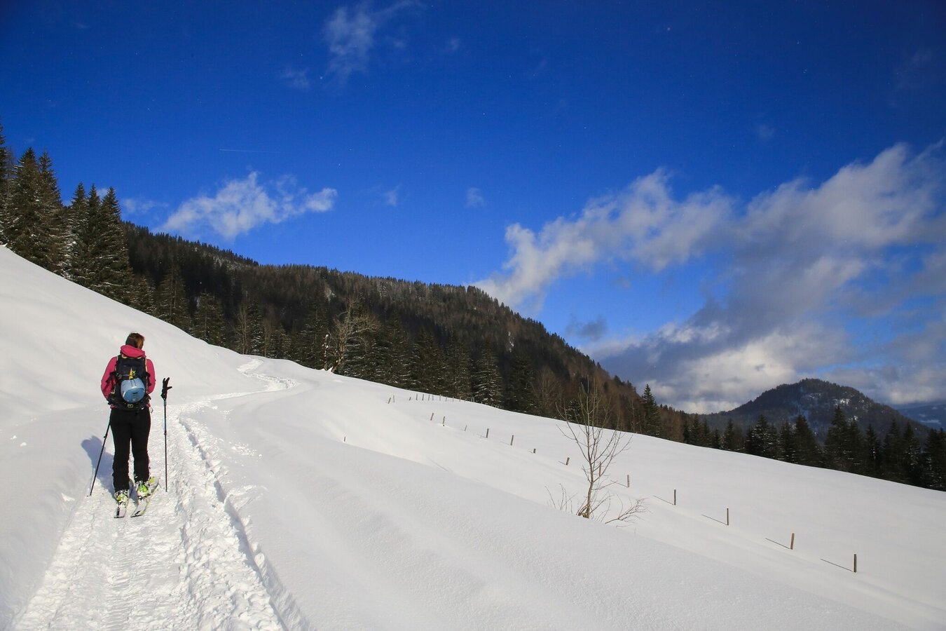 All beginnings are yay! You are a greenhorn? Then this should be the first voyage for your new skis. Because here an extremely comfortable forest road brings you up to a very scenic alpine pasture.