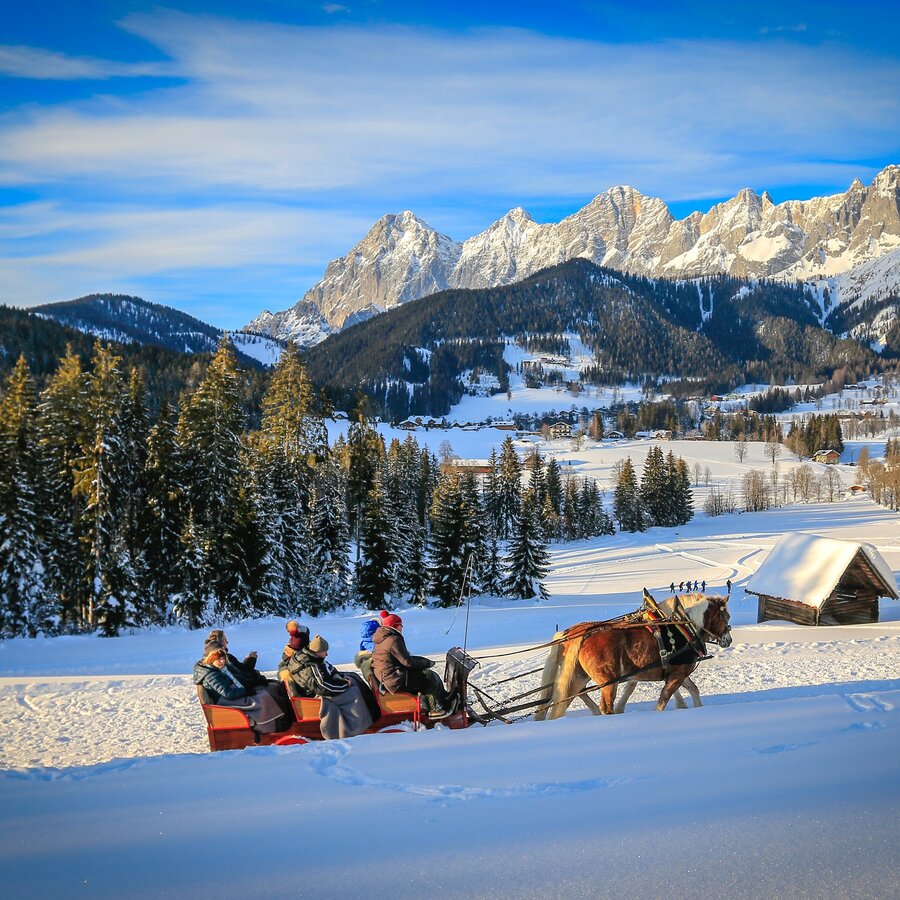 Beautiful and a bit longer ride on the horse-drawn sleigh, which is very sunny most of the time. The ride connects Pichl-Vorberg with Ramsau-Vorberg and has Gasthof Stocker and Frienerstube inns to stop for refreshments on the way. Don't forget your sunglasses - it might be sunny :)