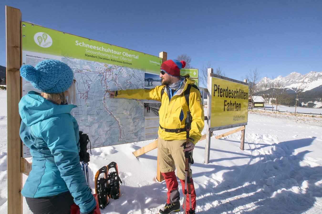 From the meeting point in the village of Rohrmoos the tour starts along Rohrmoosstraße, taking you downhill to the roundabout traffic. Here, the sleigh route turns off right onto Tälerstrasse road and takes you downhill into the small village of Untertal with Landalm inn. From there, the tour ascends slightly into the beautiful high valley of Untertal, passing by Michlbauer inn, the cross-country trail head Hinkerbrücke (tip for XC skiers: Kristallloipe cross-country track starts here) and Gasthof Tetter inn. Finally you reach Waldhäuslalm inn where the sleigh turns around and follows the same route back to Rohrmoos.