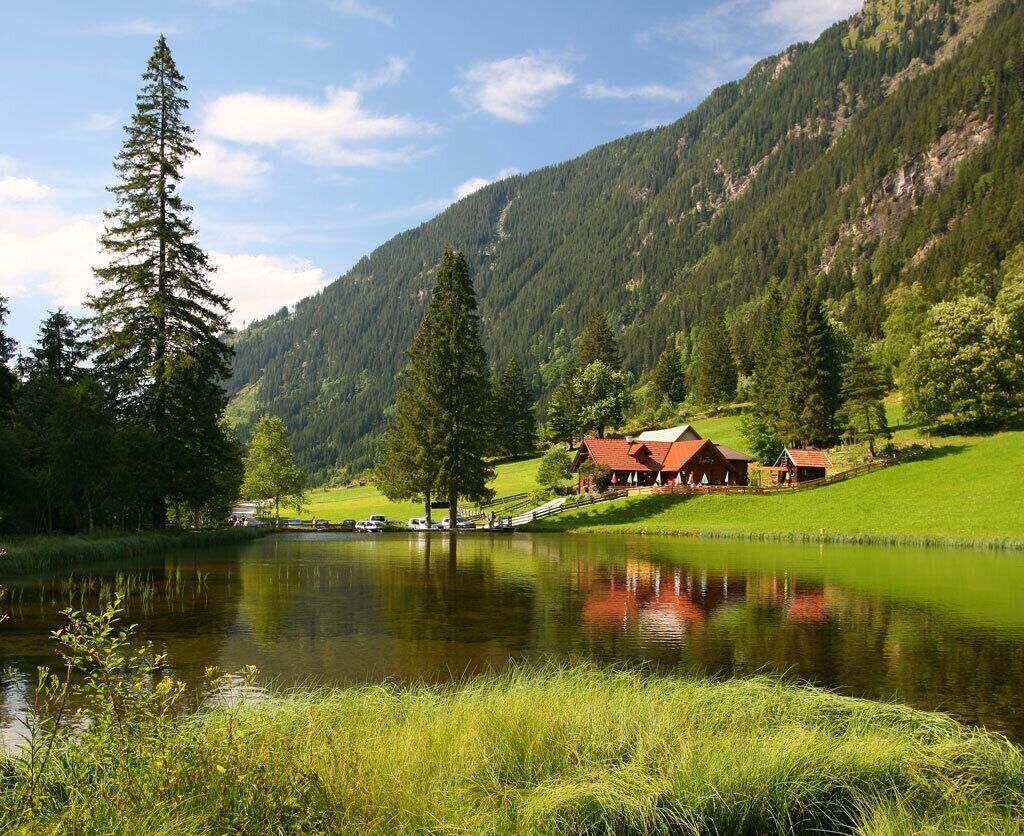 From the museum you hike along the forest road back to the Wehrhofalm. Alternatively, you can turn right down to Obertalstraße immediately after the signposted forest road fork. From there, walk along the Obertalstraße into the valley until you reach the start of the gravel road. Now you turn left onto the access road to the Hirsch forestry administration. At the small chapel you keep left and walk past it out of the valley to the pond at the Wehrhofalm, where you can comfortably stop off.