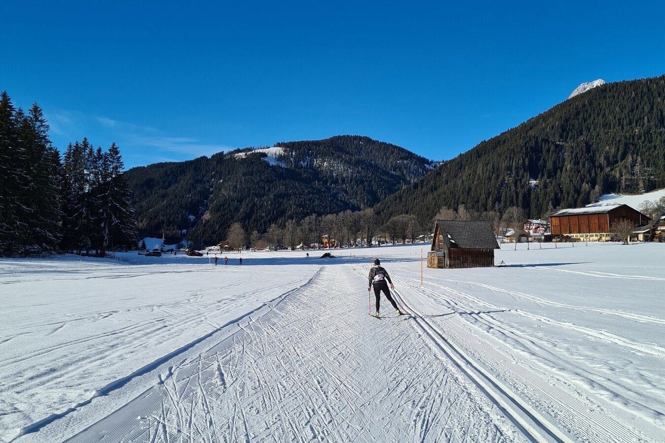 Parking available at the "Ramsau Zentrum" next to the stadium.From many accommodations in Ramsau, the nearest cross-country ski trail is less than 300 m away on foot. Entry points are also easily accessible by public transport. First take the train to Schladming and from there take the buses of the RVB in the direction of Ramsau. You can get on at the bus stops in Obere Leiten, then at the bus stops - “Heimat” - “Kulm” (Ramsau information office, connection at the Alpenbad junction) - “Ramsau-Ort” (stadium) - “Brückenhof” - “Ski Willy”.