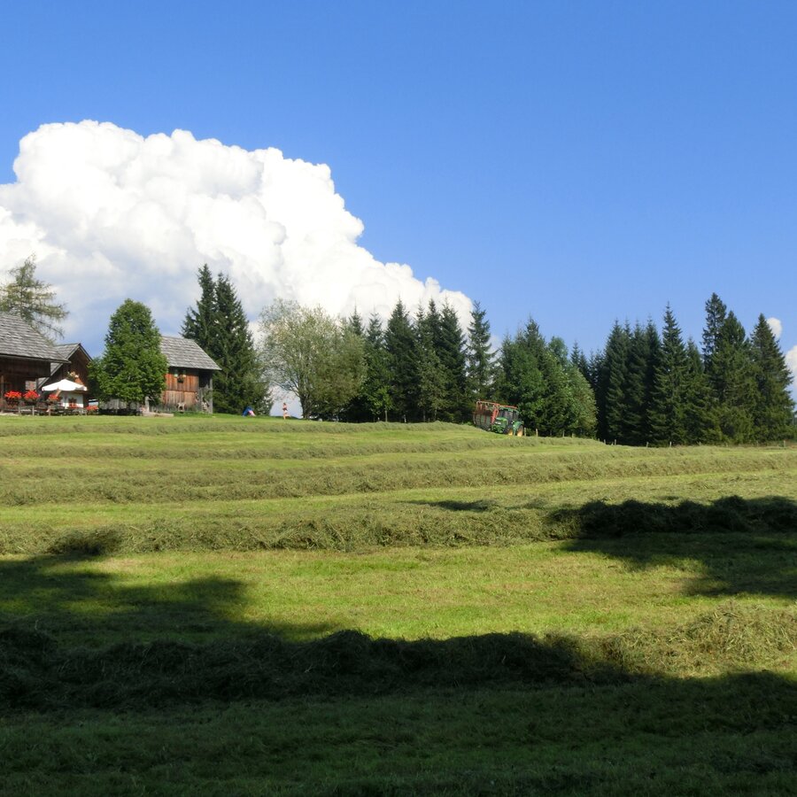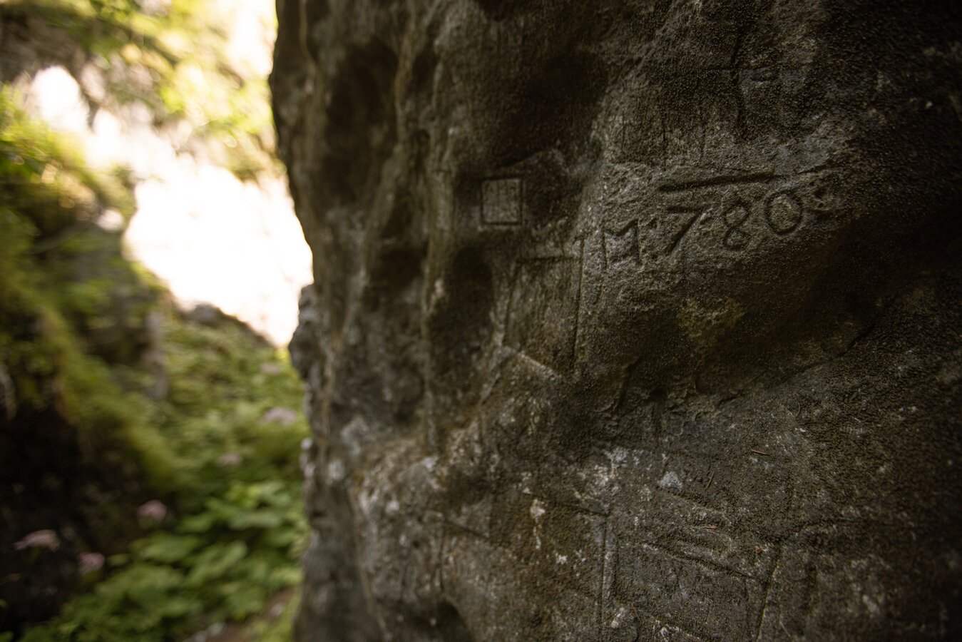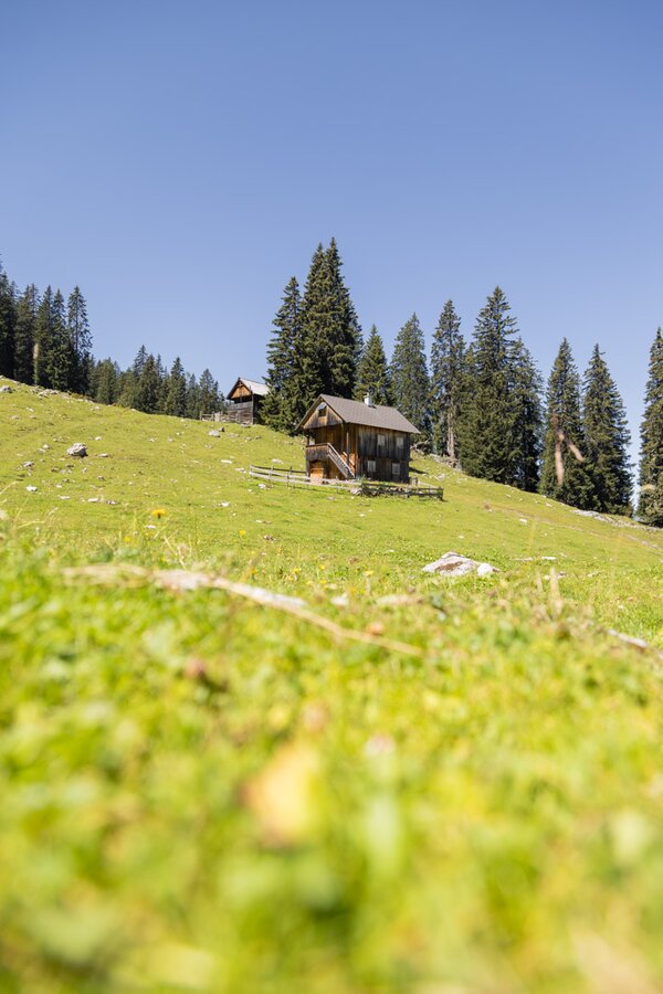 We go downhill from the Gasthof Steinerhaus and continue along path 618. We walk over big roots and uneven ground until to our right, below the Kimpflingsattel, there is a turnoff to the Notgasse of path 618. Here we have to take a close look, as the turnoff is signposted, but still easy to miss. From here we walk about 30 minutes to the actual Notgasse, an impressive gorge with up to 60m high rock faces and historical rock carvings. We follow the path through the gorge until we reach a forest path that we follow up to Brandalm. We continue along the path past the Viehbergalm into the forest - this section is also called "Bettlersteig". The path leading on is marked as a Dachstein circular hiking trail and leads over the summit of Hochmühleck and over the Goseritzalm always downhill through the forest to the Steinitzenalm.