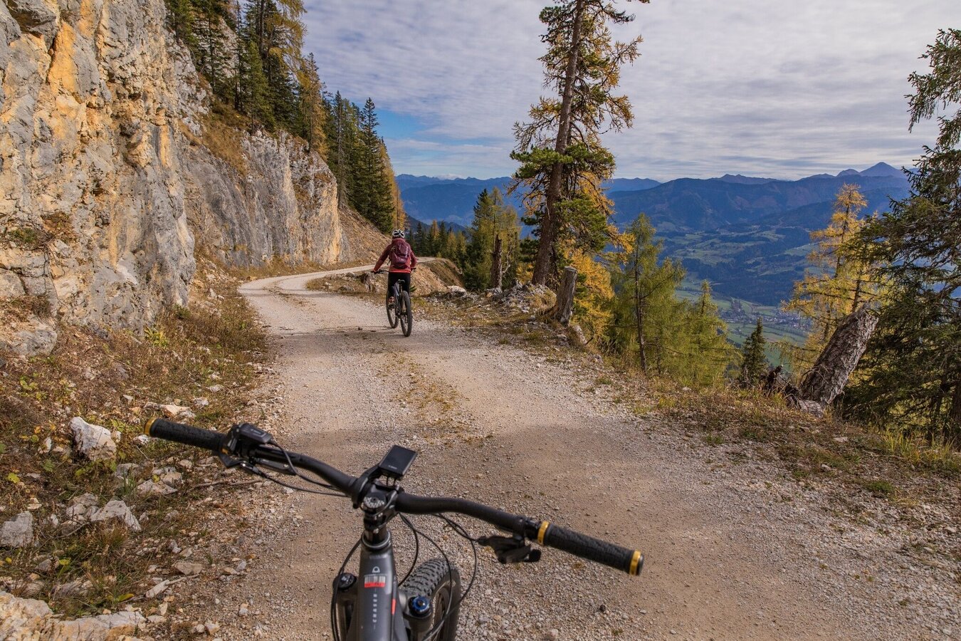 The Storn Alm is not serviced but offers breathtaking views of the Schladming-Dachstein holiday region. After a well-earned break, the route leads back via Gsengwand, Burgstaller, and Passeck to Weißenbach. From Weißenbach, riders have the option to take the fee-based singletrack, which is free for Sommercard holders. Alternatively, the tour can be continued on the regular road back to the starting point at the Hauser Kaibling valley station.