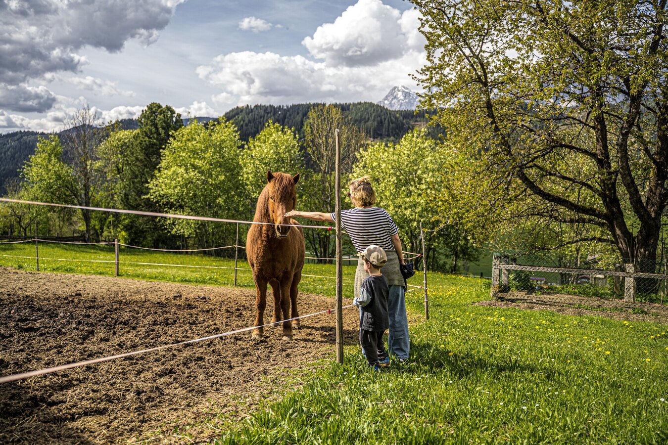 From the hiking trail head you walk pass through between hotel Stocker's Erlebniswelt and Sport Tritscher and - passing by restaurant Pariente - you follow Mosergasse road downhill. At Pension Wiesenegg you make a left and follow Wiesenweg road until you reach Schererhof farm. Pass by left of the stable and continue uphill through the forest to the trail junction at "Reiterkreuz". Make a left and follow Reiterkreuzweg road back to the starting point.