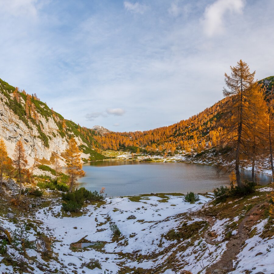 Take the chairlift to the Tauplitzalm. Then you start on the marked trail no. 218, first to the Steirersee, then to the Schwarzensee and to the Leistenalmhütte. From there, continue to the right to the Interhüttenalm. In the Gamsofen area the trail goes downhill. Following the Grimmingbach you hike via the Gnanitzalm on the forest road back to Tauplitz.