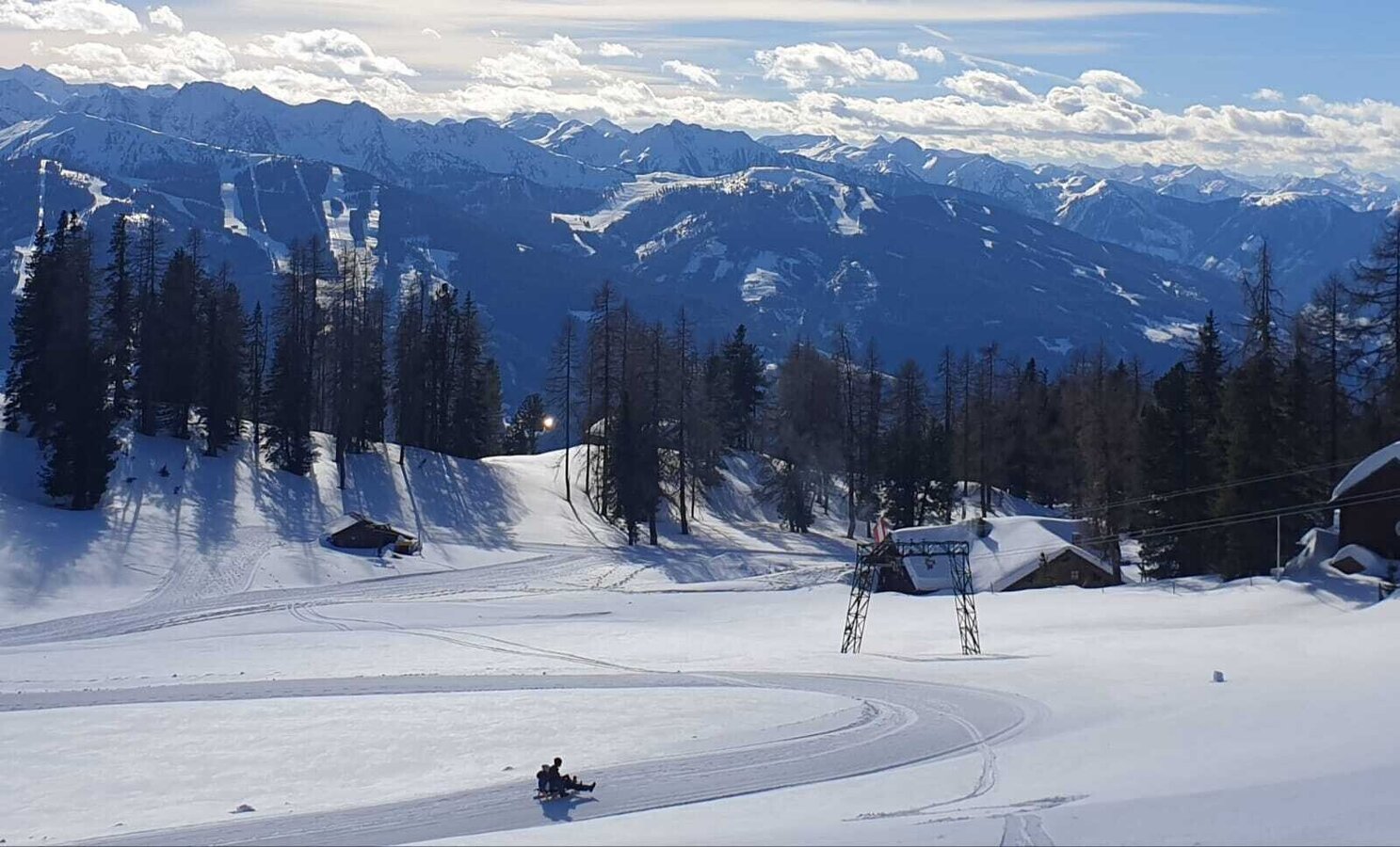The toboggan run is tracked along the path to the Brünnerhütte. You can either bring your own toboggan or rent one from the Stoderhütte. You toboggan quickly downhill to the Brünnerhütte and on the way back on foot you warm up for the next toboggan ride.