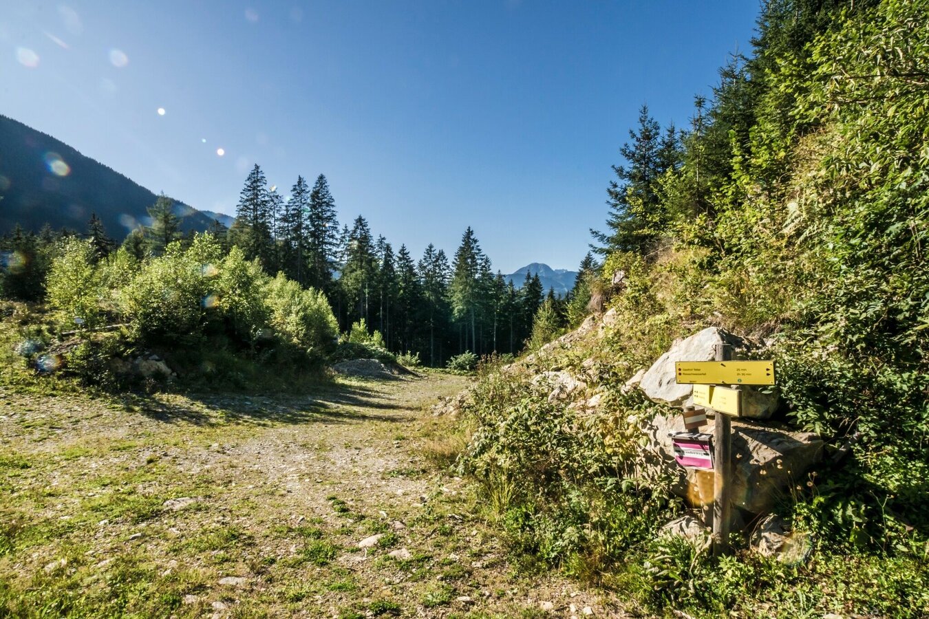 The Untertal Panorama Tour runs along the Untertalbach creek for the first part and then continues along the slopes of Planai back to the village of Untertal - the Dachstein massif always in your view.