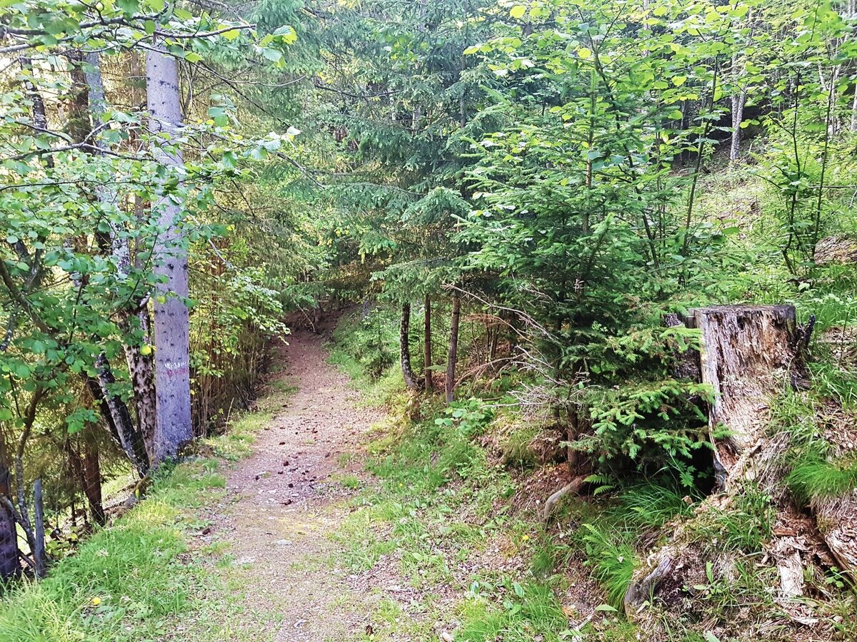 Gestartet wird taleinwärts auf dem Themenweg Wilde Wasser entlang des Untertalbaches. Nach dem »Ahlhof« geht es über eine Wiese in den Wald, und Du wanderst über Wiesen nun leicht ansteigend zum Gföllerhof. Entlang der Straße spazierst Du nun taleinwärts bis Du bei der Janerbrücke auf die Untertalstraße triffst. Dieser folgst Du ca. 200 m bis zur Hinkerbrücke, wo Du rechts vor der Brücke Richtung zu einem weiteren Naturhighlight - dem Toteisboden - abbiegst. Das Steilhangmoor wirkt als „natürlicher Kühlschrank“.