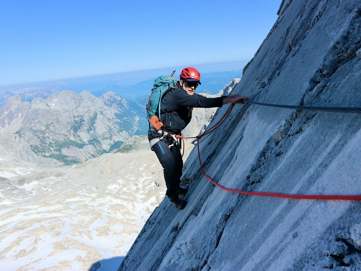 The Amon Klettersteig provides a connection between the Adamek- and Simonyhütte. A very rewarding, though high-alpine via ferrata that should not be underestimated, with approach/descent across the glacier. Aside from alpine experience and good physical condition, glacier equipment is also essential.