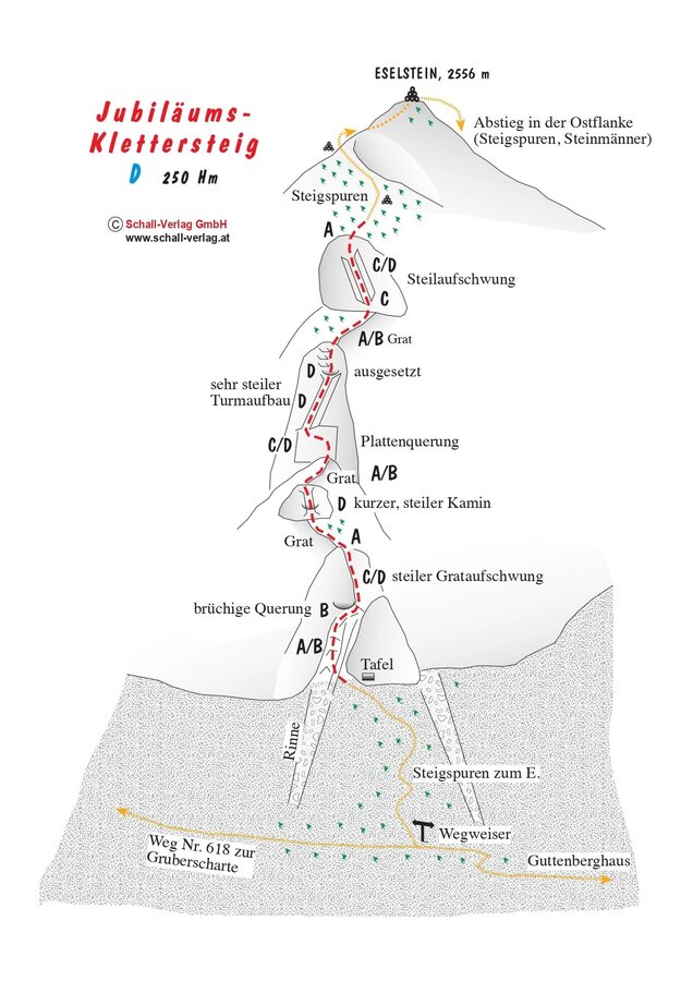 Descent: hike down the narrow, marked path at Eselstein's northern-slope until you reach the trail. Walk along Feistererscharte back to the Guttenberghaus (approx. 40 min) and take the trail you used for the ascent, back down. Or go down the Eselstein Westwand ferrata and back to the hut.