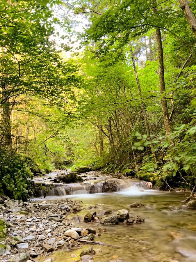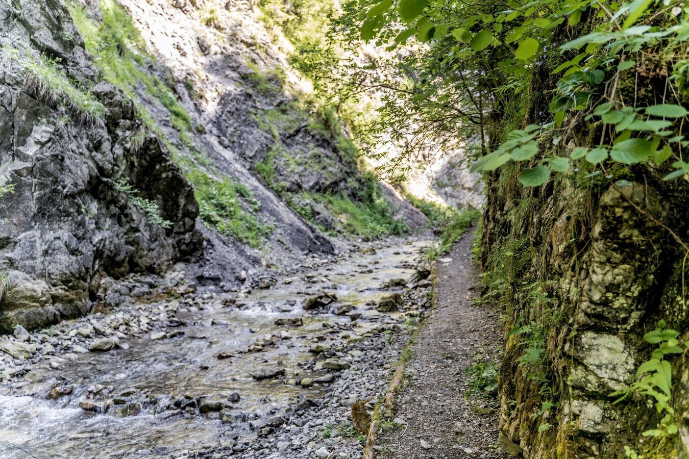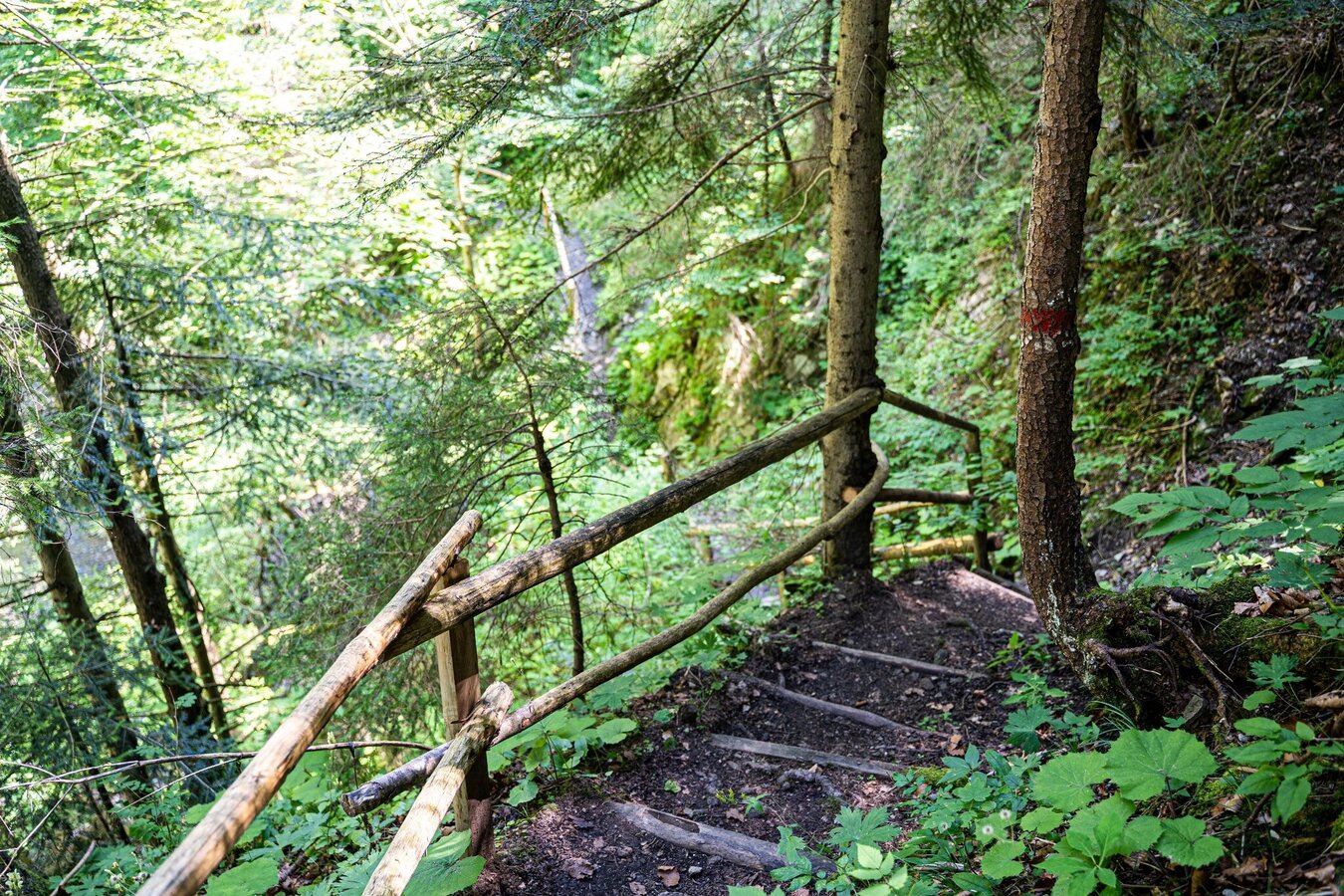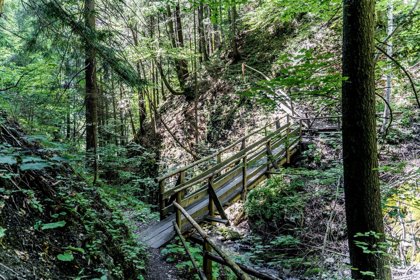 The well-marked trail follows a small stream and winds its way across several wooden footbridges, past impressive scenery. Despite the short walking time of about 20 minutes, you should wear sturdy shoes, as the path is partly rocky and requires sure-footedness.
