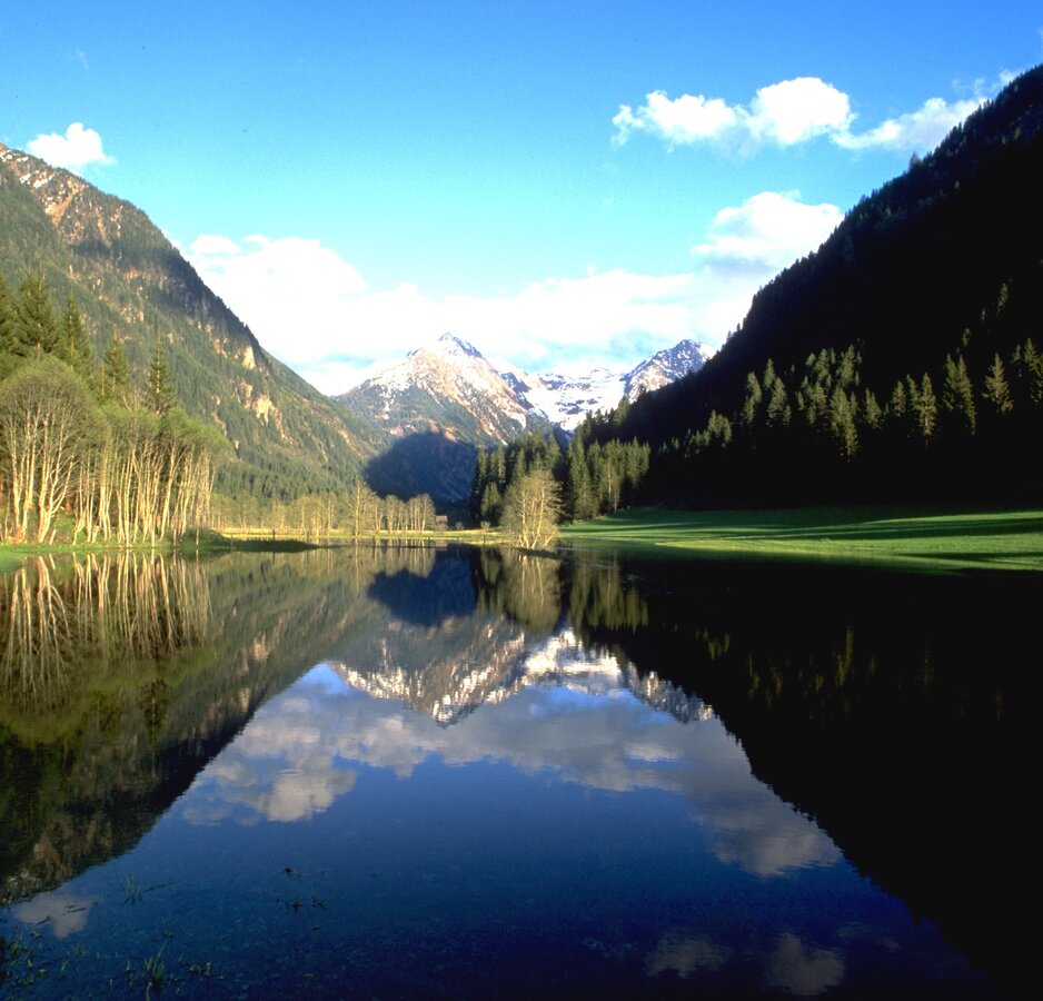 From Hinkerbrücke car park take the theme trail "Wild Waters" to the right of the bridge. After a couple of meters the first highlight awaits you: nature conservancy Toteisboden: this moor is a geological anomaly in Untertal valley. Along the wide trail you then continue to Tetter moor, where you cross Untertalbach creek over a wooden bridge while enjoying the great view to the moor. You walk up to Gasthof Tetter Inn and then continue right on the hiking trail that runs next to Untertalstraße road. Soon, you reach Waldhäuslalm Inn, and just 50 m beyond the inn you turn-off right and follow the trail along the creek again. You continue your hike towards the valley head - at first through a forest, then over the meadows around Sondlalm Inn. At the trail junction 400 m after Sondlalm you make a right (you could also walk along the road for about 5 minutes to reach Gasthaus Weiße Wand Inn) and continue along the theme trail Wild Waters until you reach Seeleiten car park and Almgasthaus Riesachfall Inn. Take the same way back or use the Planai buses.