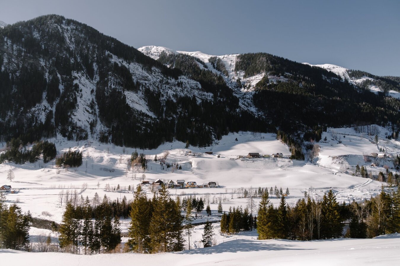 A wonderful winter hike at the end of the Kleinsölk valley. Around the small village of Hinterwald you can enjoy the tranquility of the Sölktäler Nature Park and enjoy the sun along this beautiful panoramic tour at beautiful rest areas.