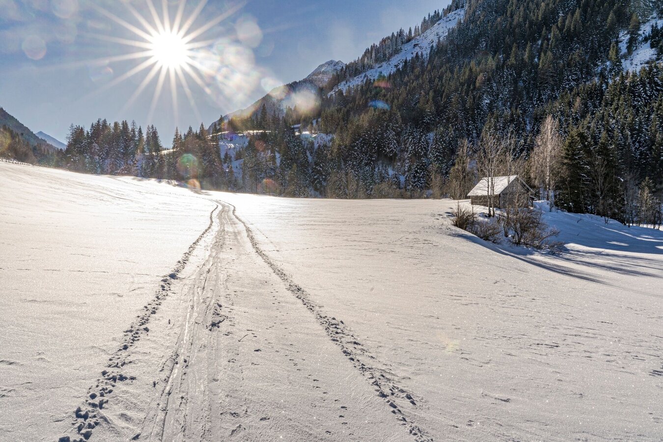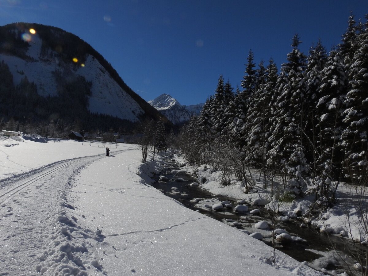 Along the cross-country ski trail from Mößna to St. Nikolai or vice versa, there is a groomed footpath. The path climbs slightly from Mößna to St. Nikolai. The Sölkbach stream accompanies the winter hiker along the entire route in the Sölktäler Nature Park.