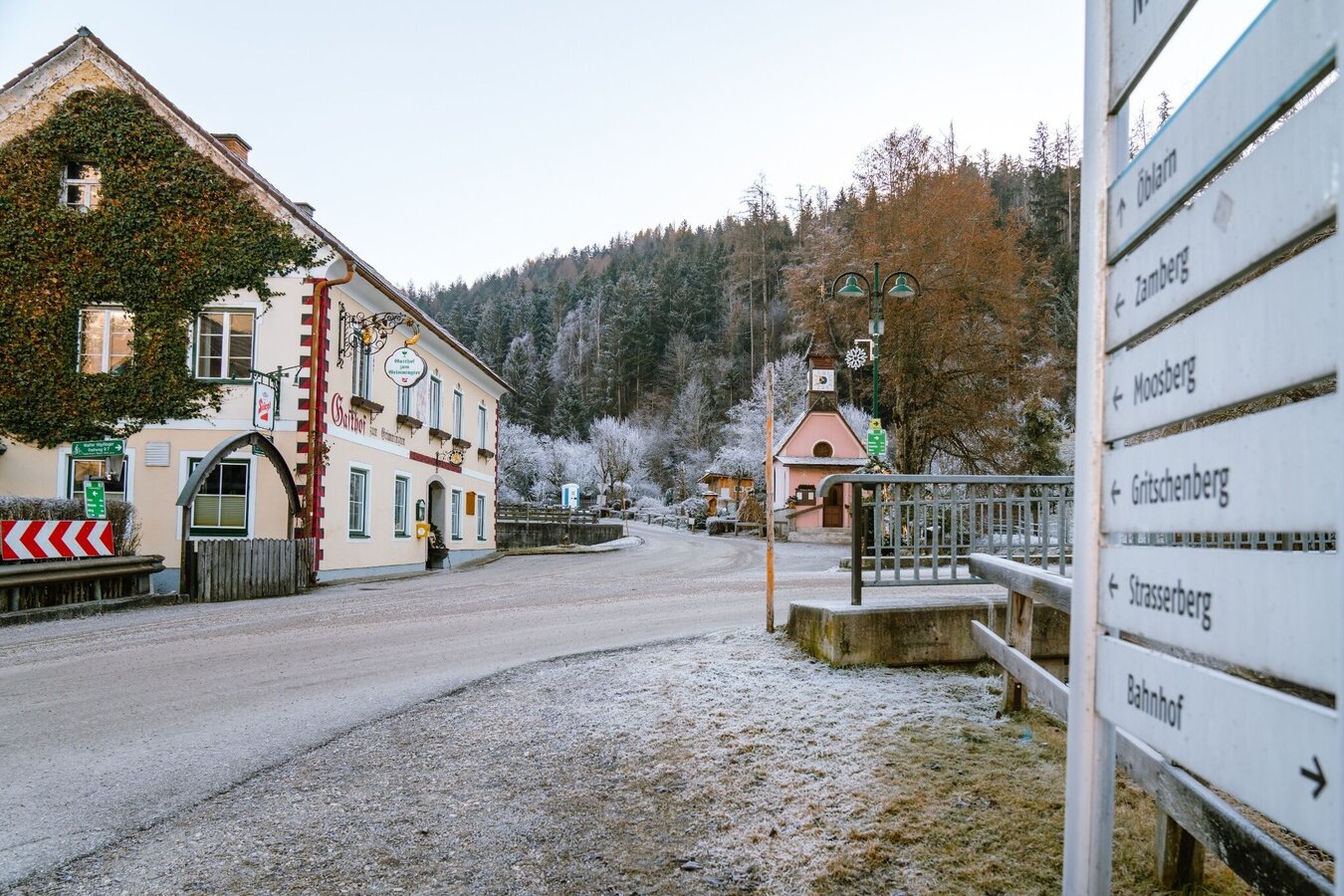 From the car park you walk past the Sacred Heart Chapel into the valley and at the Moosberg bridge you turn left up towards Zamberg. A bend and up through the forest you come to Zamberg where you can enjoy a beautiful view of Niederöblarn, the Ennsboden and the Grimming. The road slightly uphill into the Etschergraben and on the opposite side out to Gritschenberg. It now goes downhill over several hairpin bends to the Gritschenberg driveway and from there briefly along the state road to the Niederöblarn entrance. Along the main road you get back to the starting point.